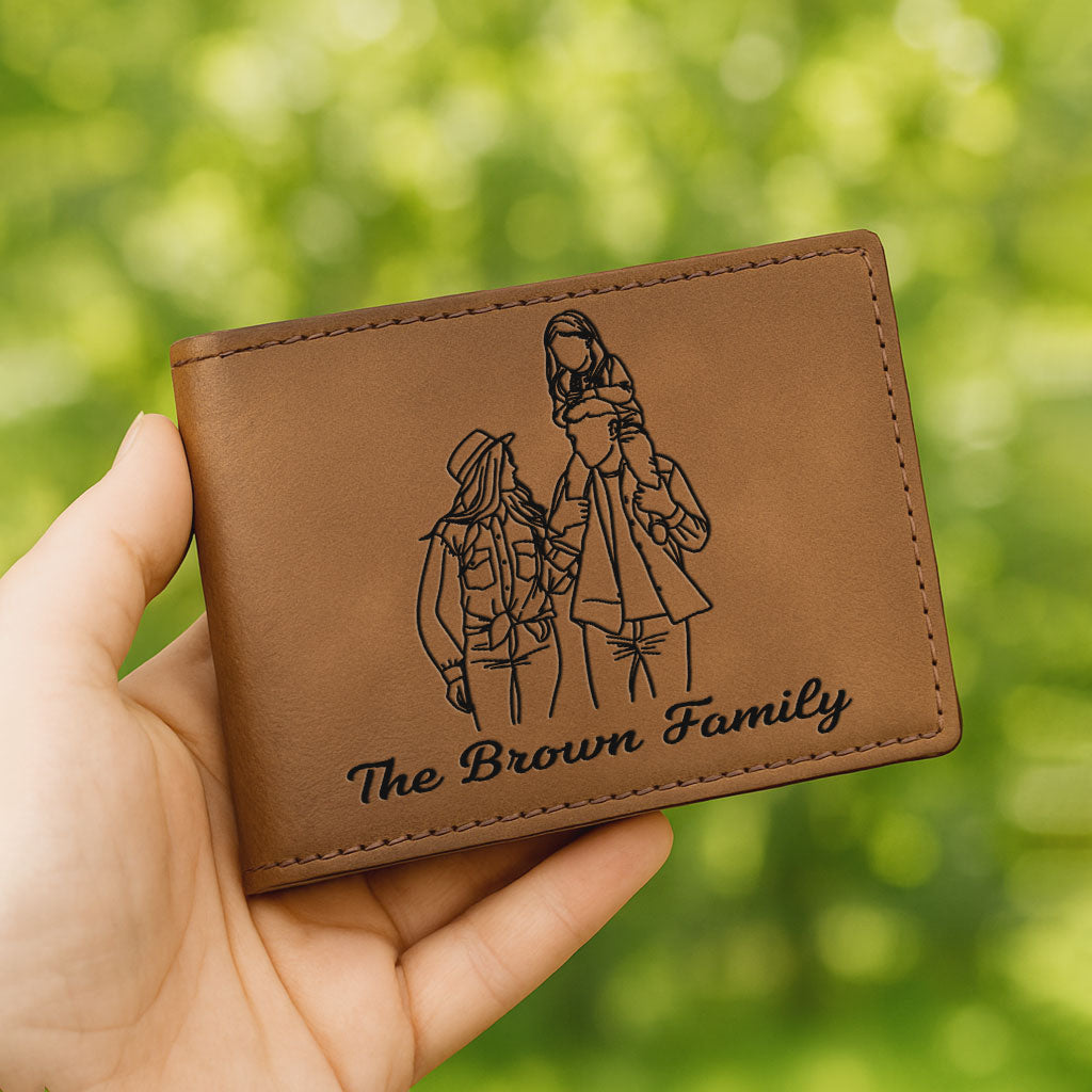 Personalized Photo to Pencil Sketch Family Portrait Leatherette Bifold Wallet