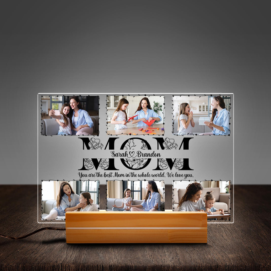 Personalized Mother’s Day "MOM" Acrylic Photo Night Light with Rectangle Wooden Base, Gift for Mom