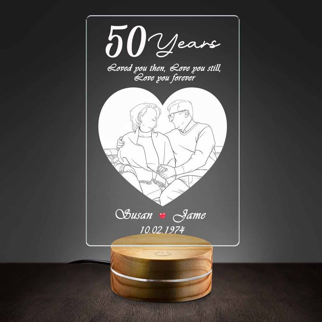Personalized Milestone Anniversary Night Light - Custom Years Together Photo Lamp - Romantic 50th Wedding Anniversary Acrylic Gift