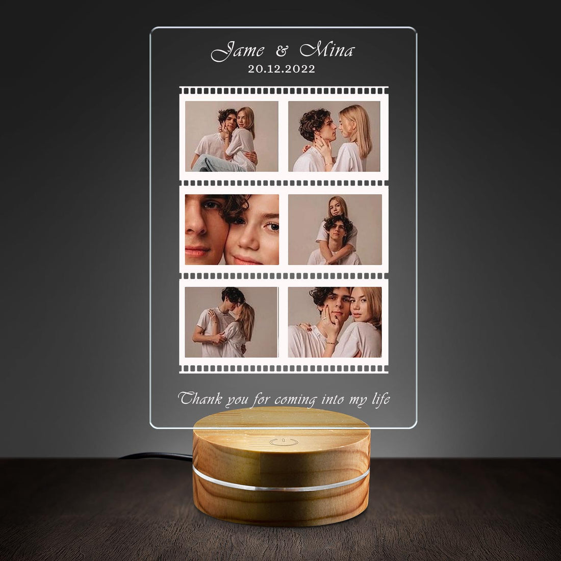 Personalized Vintage Film Strip Photo Night Light - Custom Couple Names & Anniversary Date Lamp - Retro 6-Photo Collage Gift