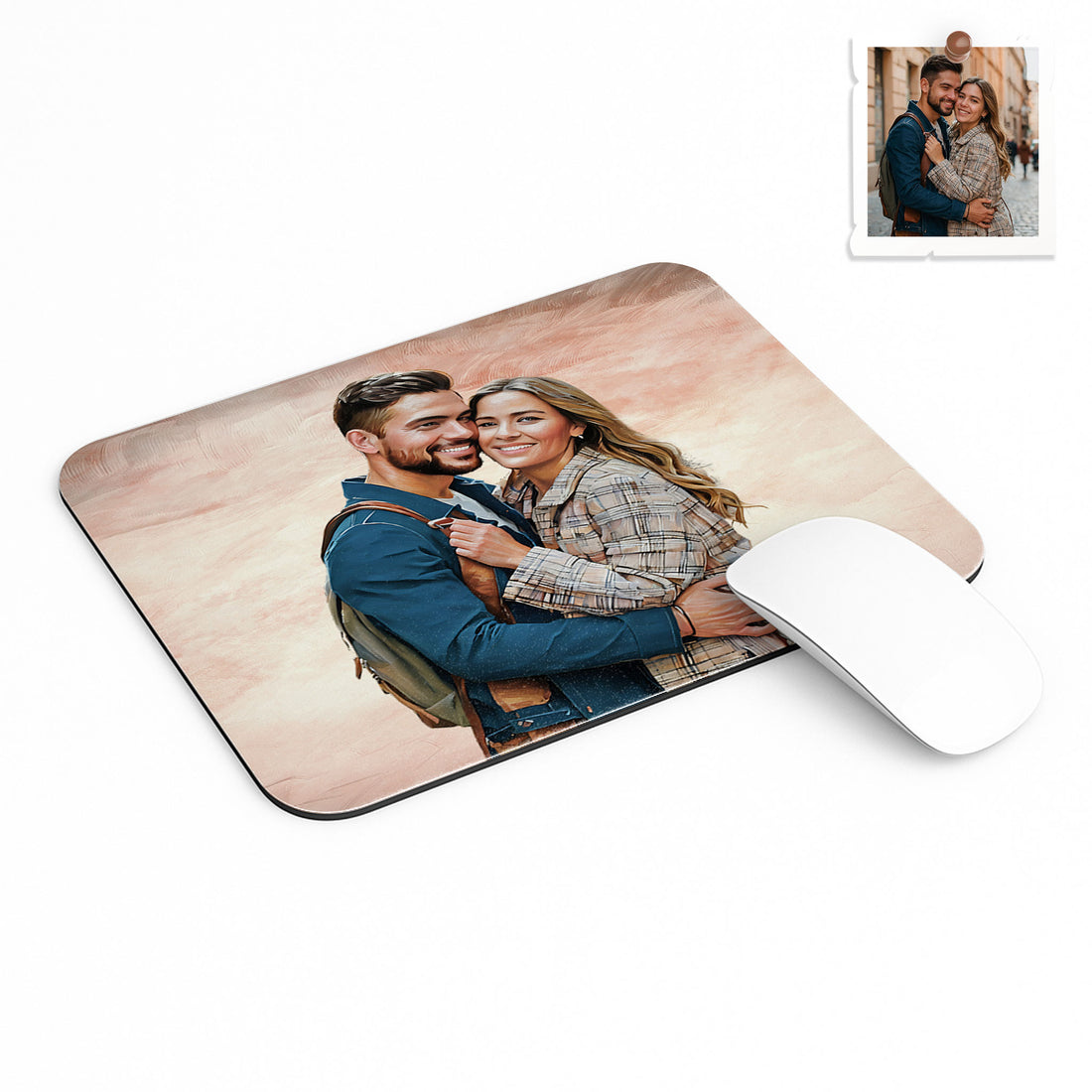 Custom Photo to Art Couple Portrait Rectangle Mouse Pad Oil Painting Style Romantic Anniversary Gift