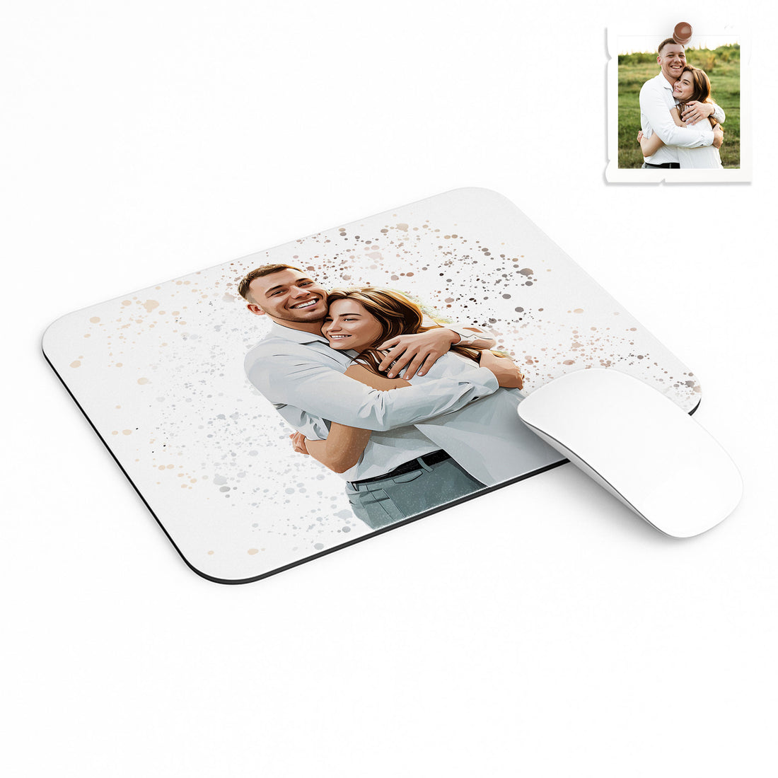 Custom Photo to Painting Couple Portrait Rectangle Mouse Pad Watercolor Style Lovely Anniversary Gift