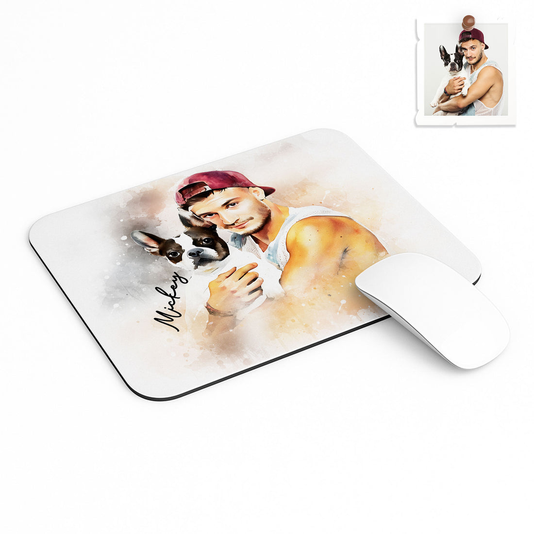 Personalized Pet Picture Photo to Art Rectangle Mouse Pad Watercolor Style Pet Birthday or Memorial Gift