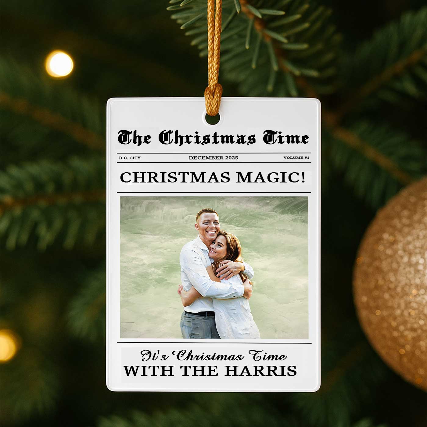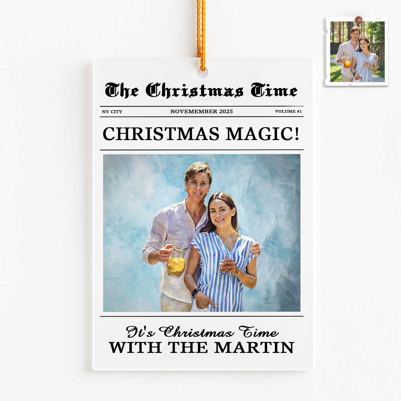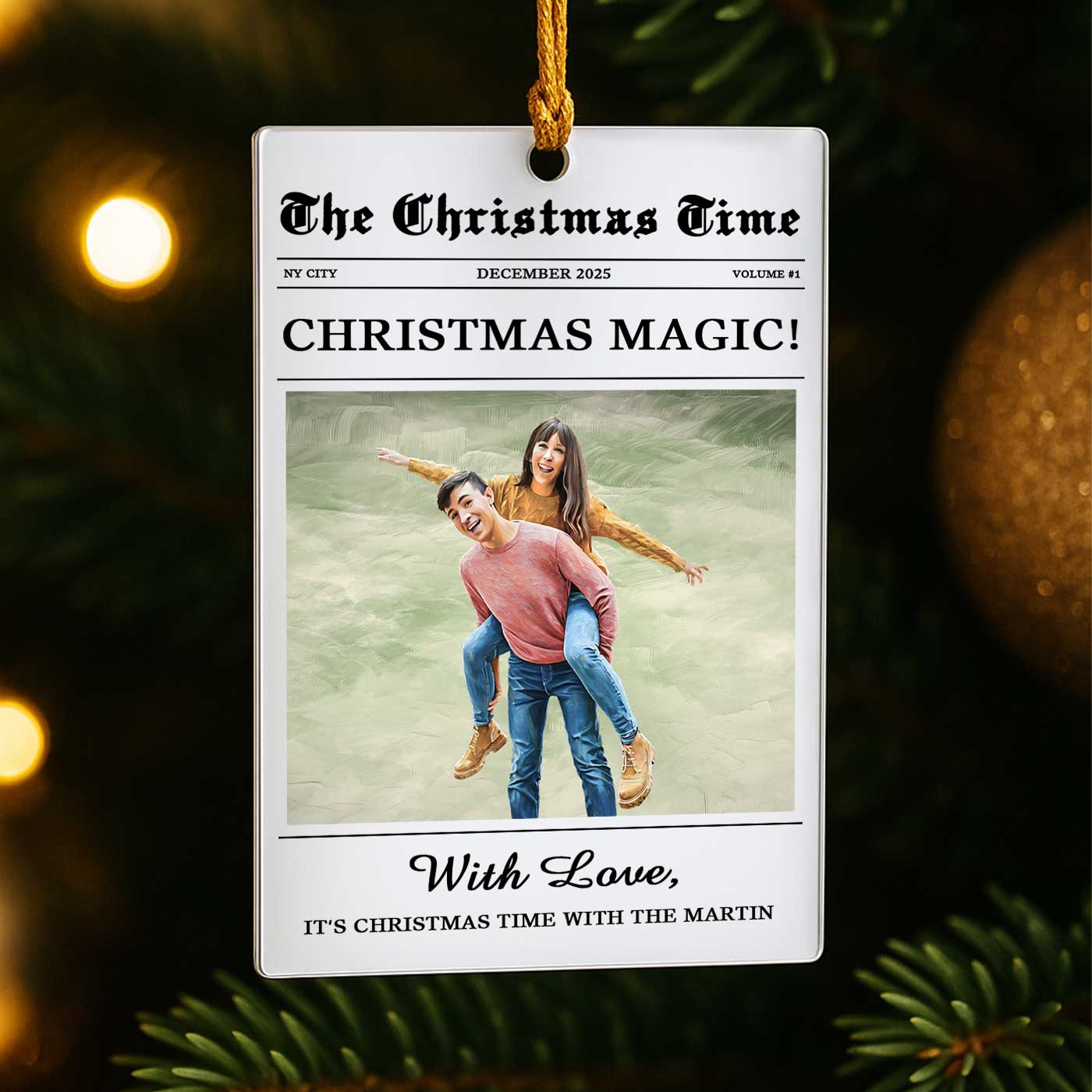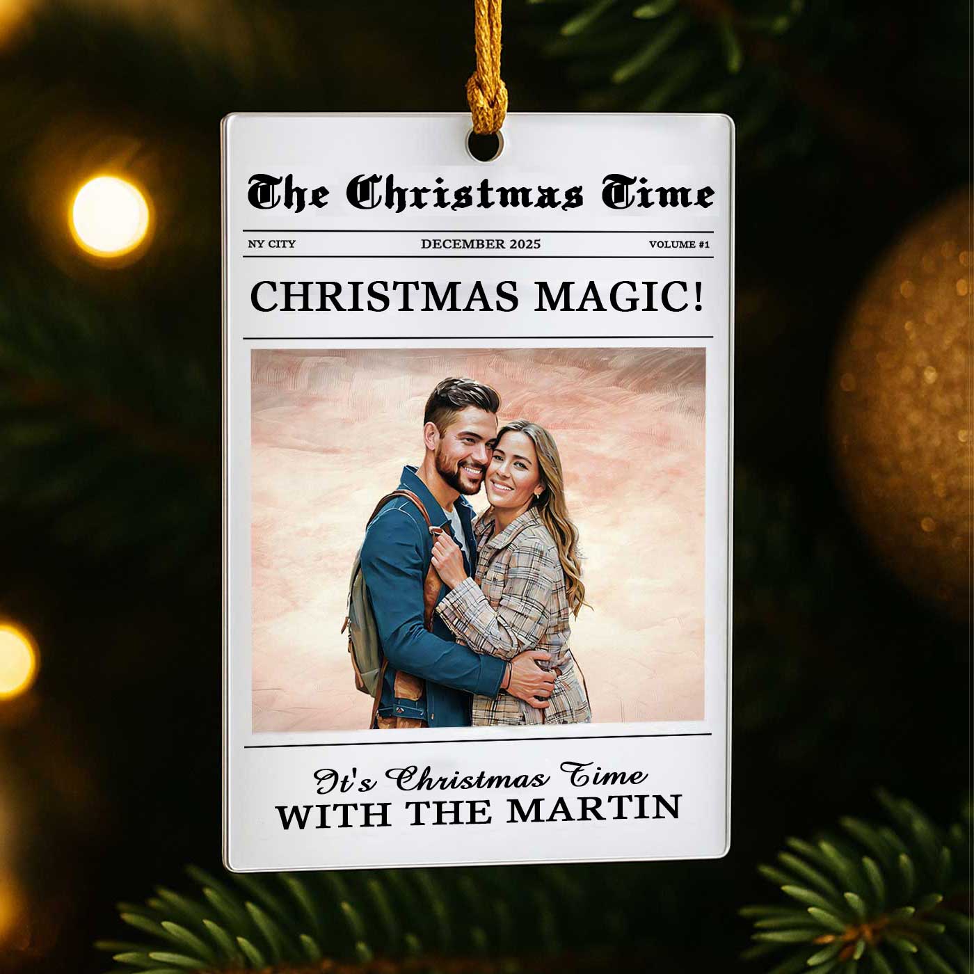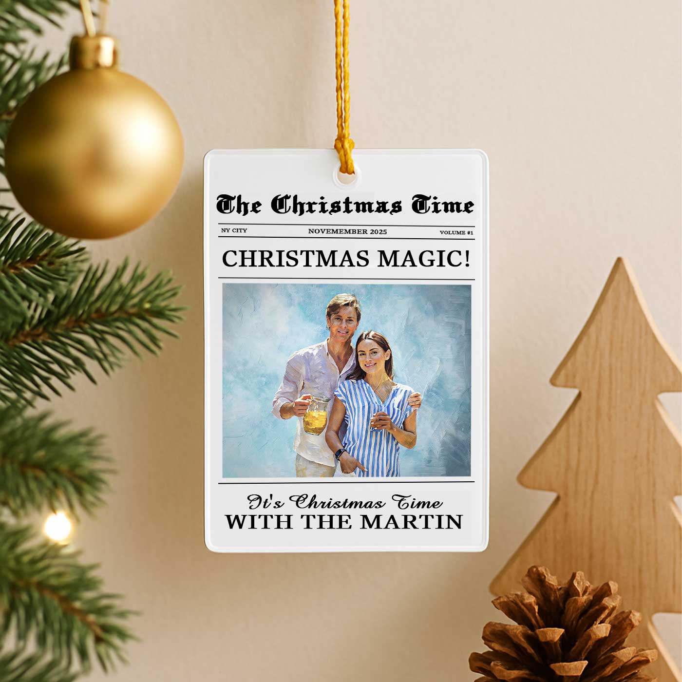 We transform your photo into an elegant watercolor portrait, styled like a charming holiday magazine cover for a truly stunning unique keepsake. Printed in vibrant detail on crystal-clear acrylic, it perfectly captures the warmth, joy, and togetherness of your best memories. Why will you love it? Because every time it catches your eye, it takes you back to the laughter, the hugs, and the feeling of home that only family brings. It’s your family story, beautifully told and forever shining on your tree.