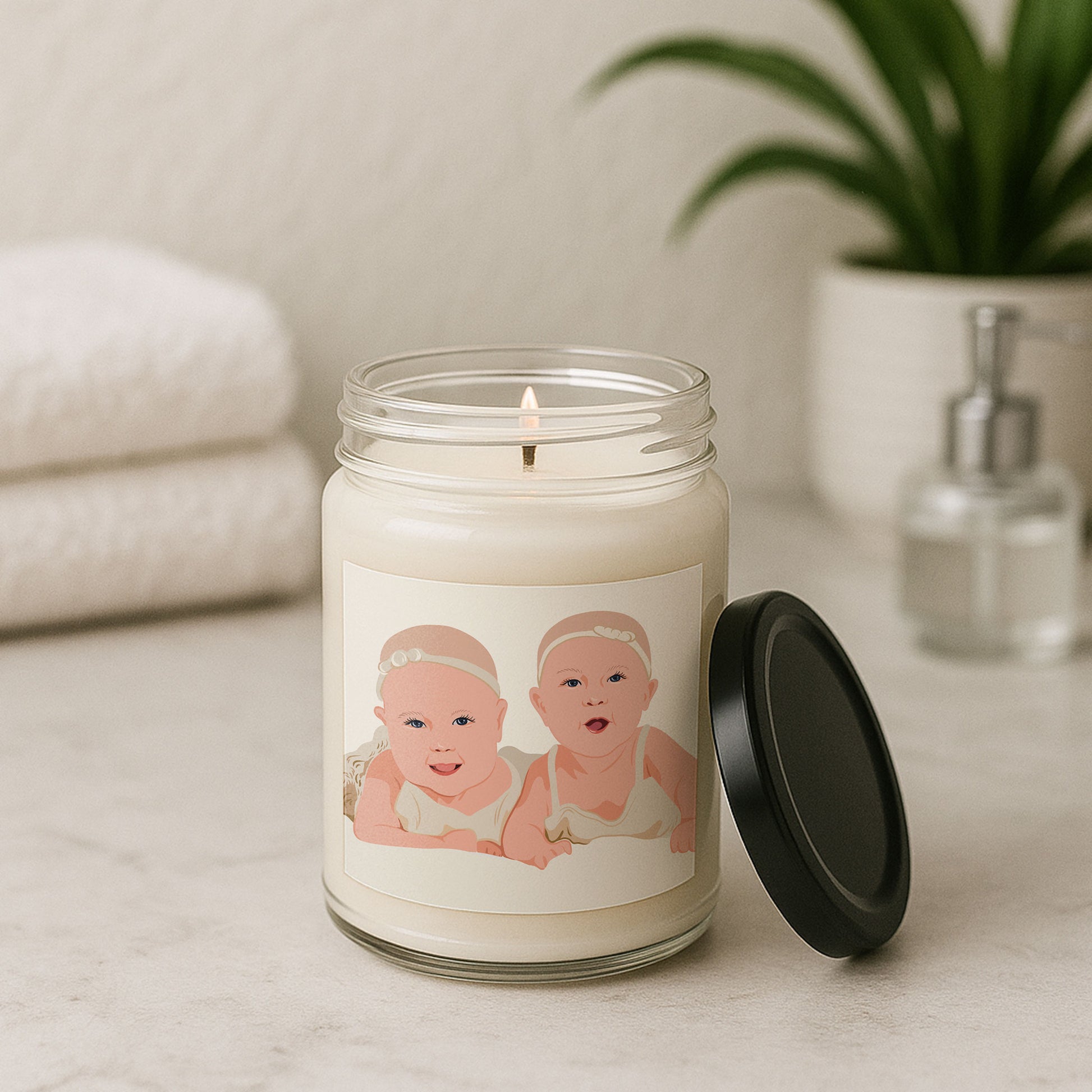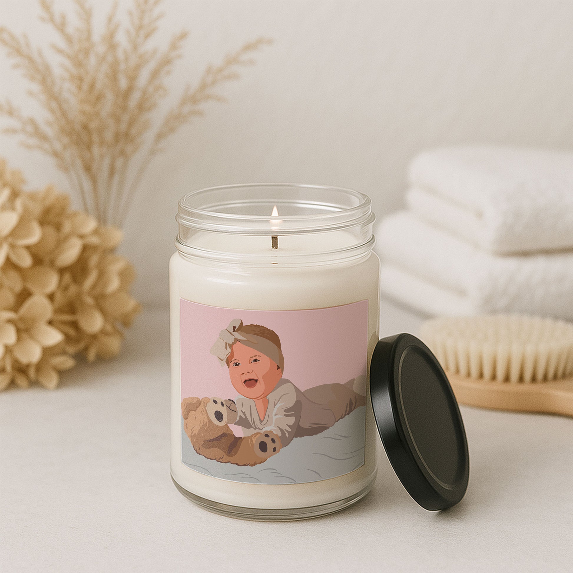 Custom Portrait from Photo Baby Picture 9oz. Scented Soy Candle Digital Art Style Thoughtful Baby Shower or Arrival Gift