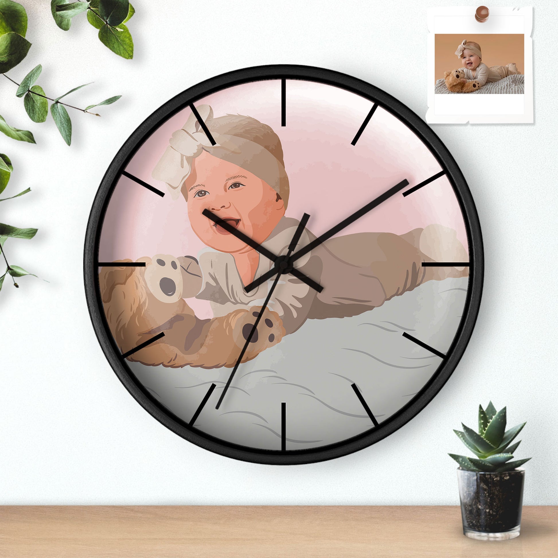 Custom Illustration from Photo Baby Portrait Wall Clock Digital Art Style Thoughtful Baby Shower or Arrival Gift