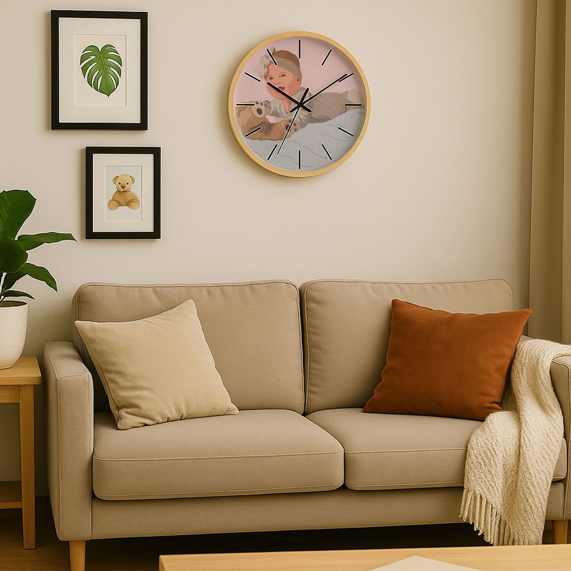 "I wanted to give a gift for the baby shower that held the quiet promise of time—the beautiful, slow moments yet to come with the newborn. I chose a personalized portrait, where the softest features were captured in gentle, thoughtful lines. Now, it hangs as a clock, its hands moving softly over that sweet face. It’s a whisper of the future, a tender reminder that every passing second will soon be filled with the profound, quiet love that arrives with a new soul, turning ordinary days into a cherished story waiting to unfold."