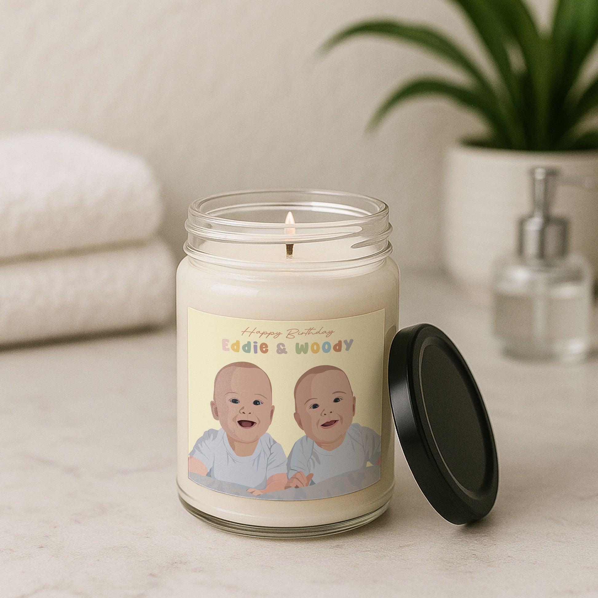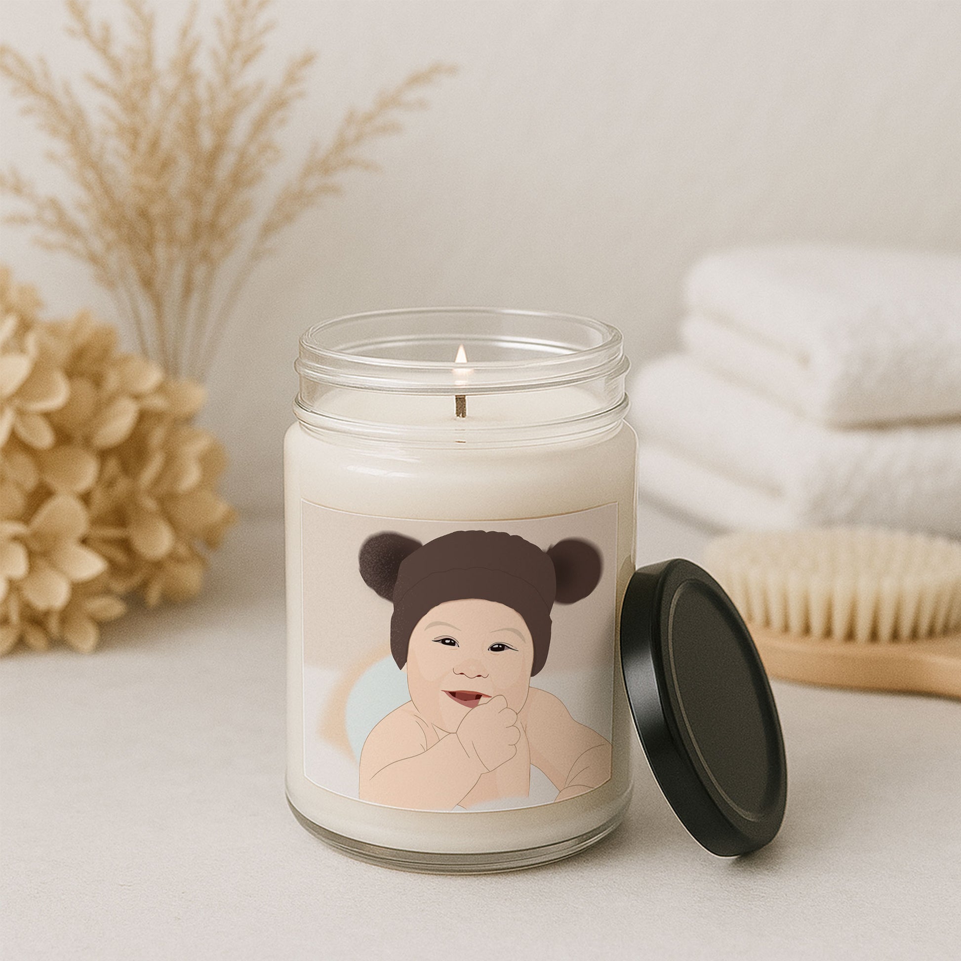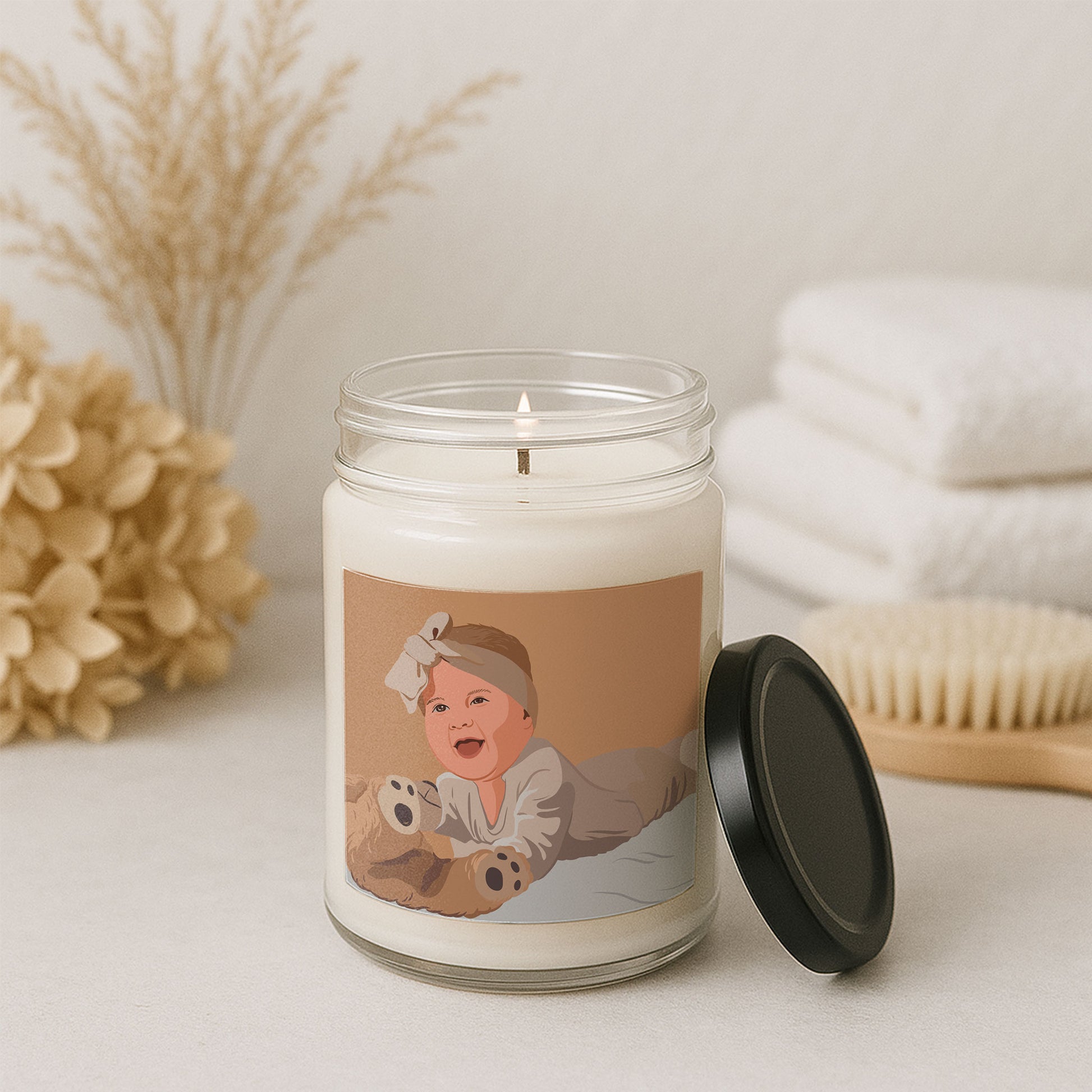 Custom Portrait from Photo Baby Picture 9oz. Scented Soy Candle Illustration Style Newborn Keepsake