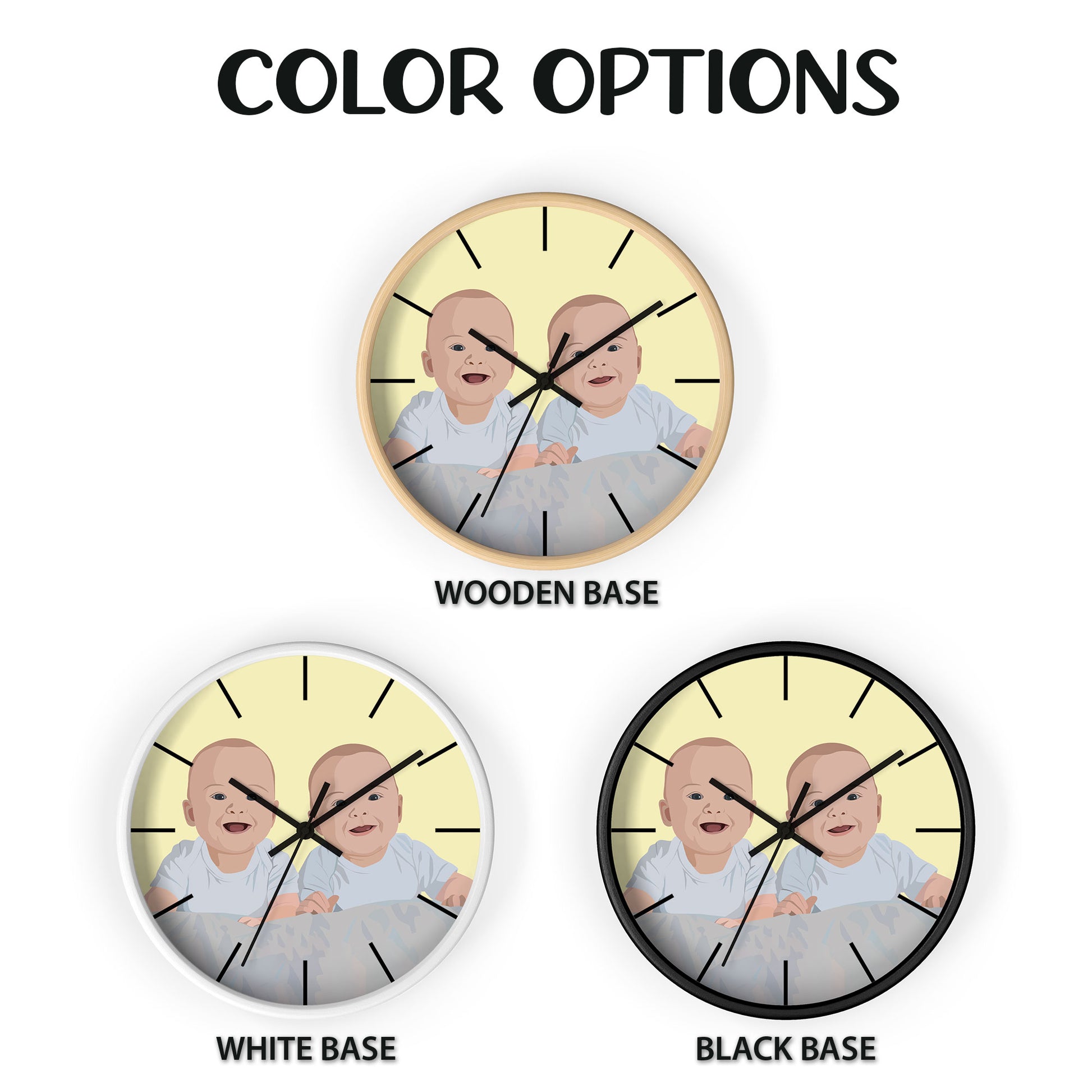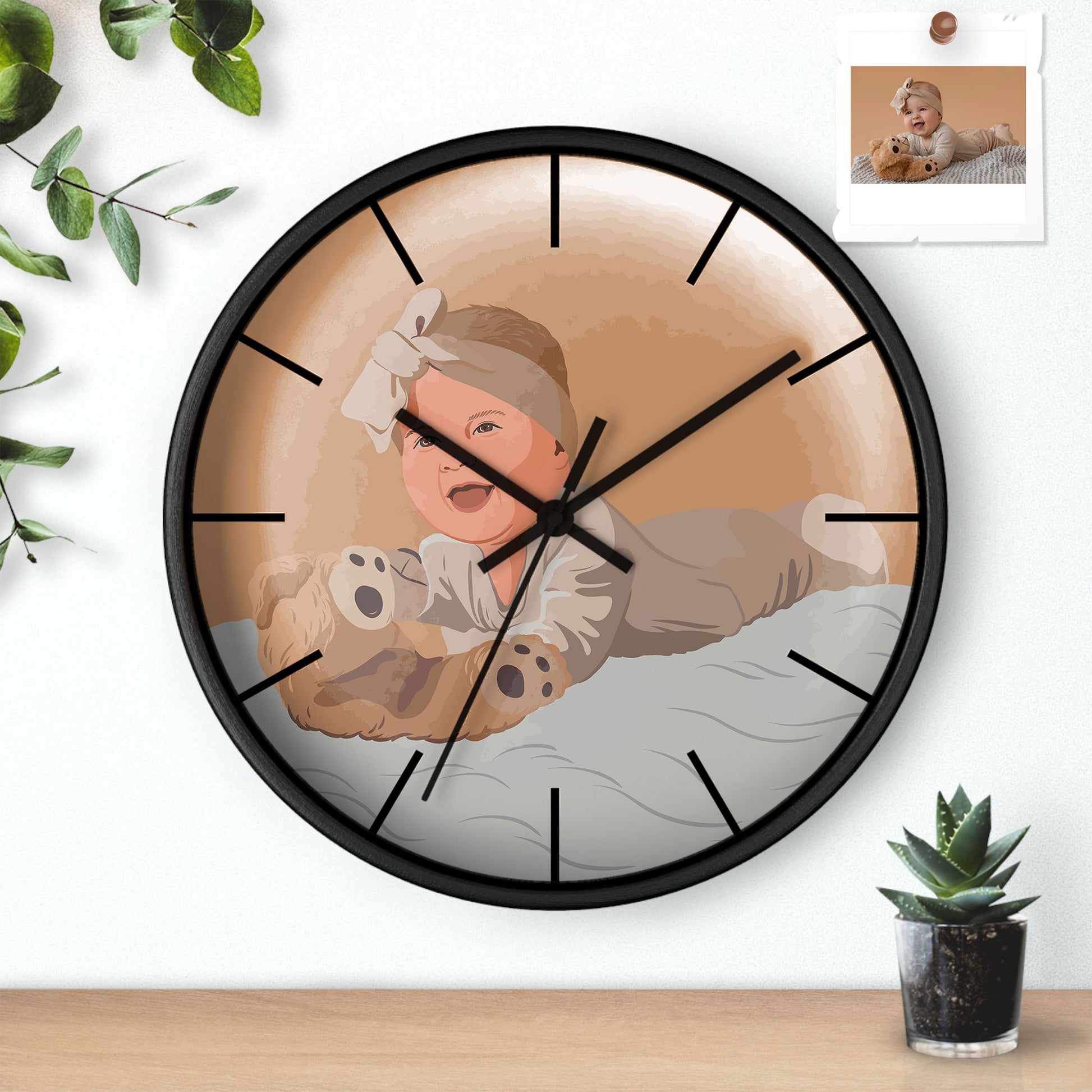 Custom Photo to Painting Baby Portrait Wall Clock Illustration Style Newborn Keepsake