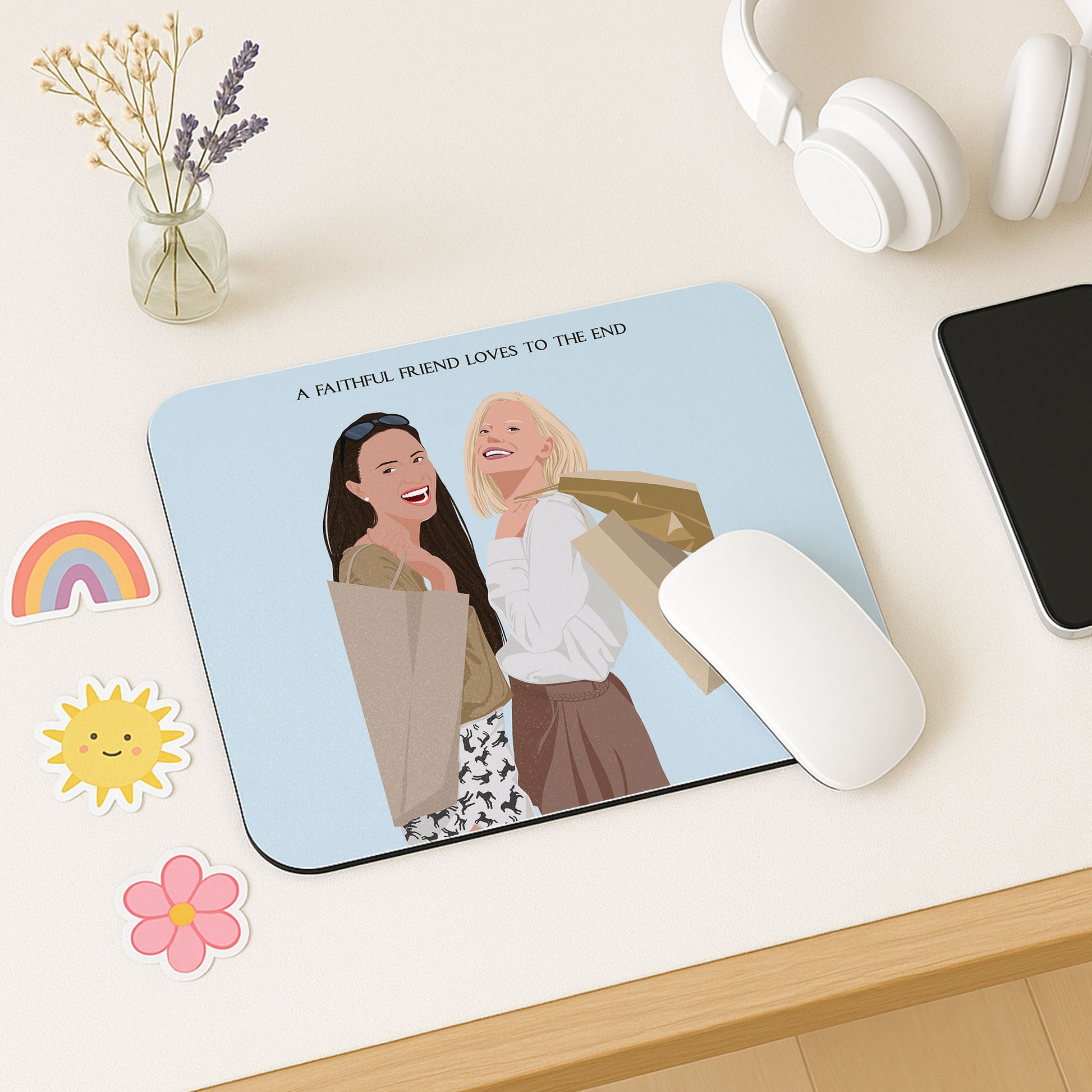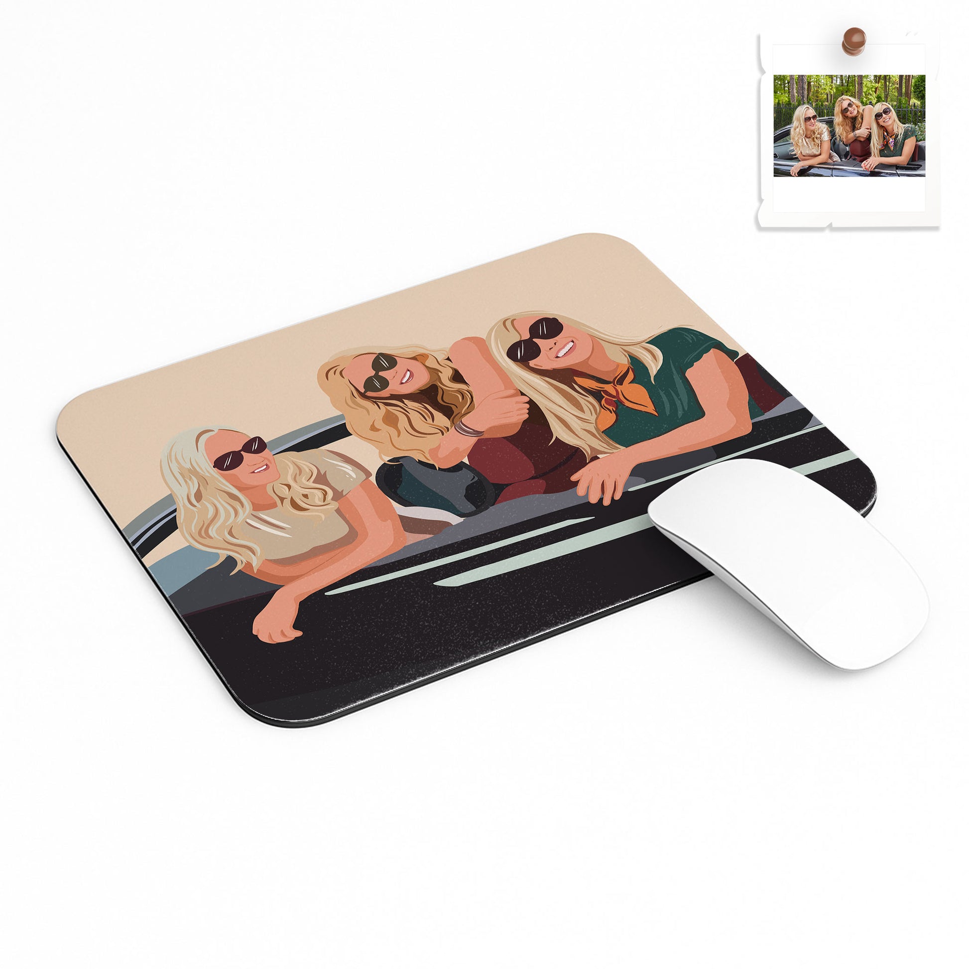 Custom Turn Photo into Art Best Friend Portrait Rectangle Mouse Pad Illustration Style Keepsake Friendship Gift