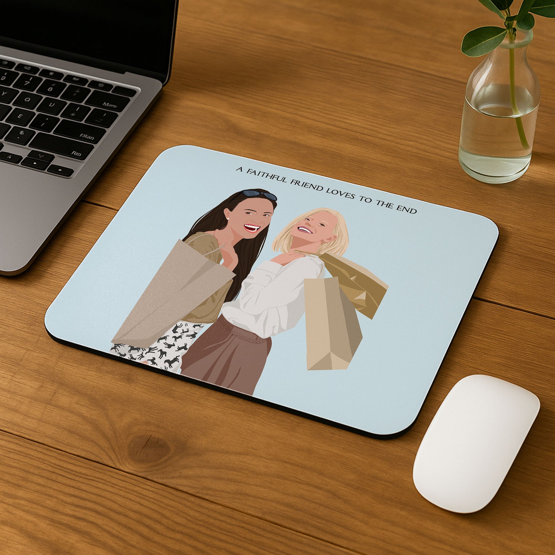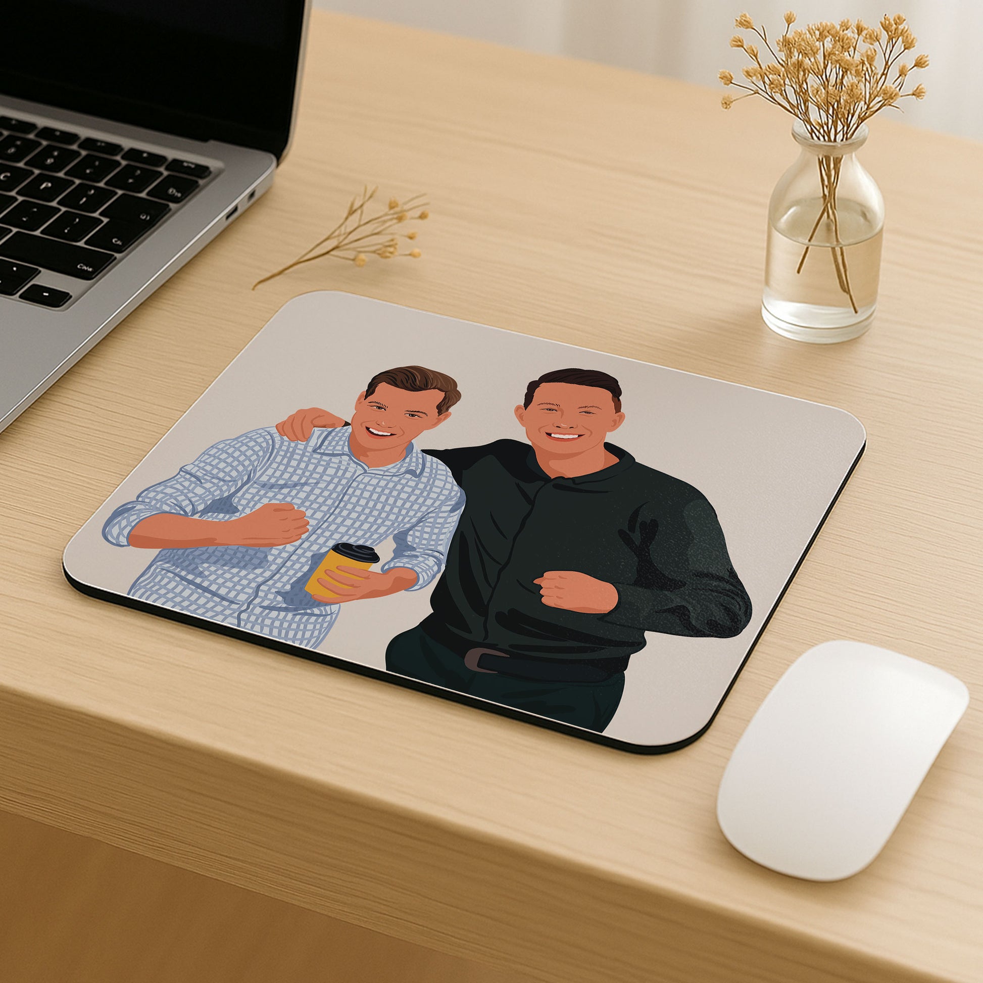 "Sitting at my desk, the illustration of our best friend portrait turns the mouse pad into a cherished keepsake of our friendship. The lively colors and dynamic lines radiate the energy and laughter we’ve shared, transforming an everyday object into a canvas of memories. It’s a heartfelt gift that keeps our bond vividly present, making each task a moment touched by the joy and loyalty that defines our unbreakable connection."