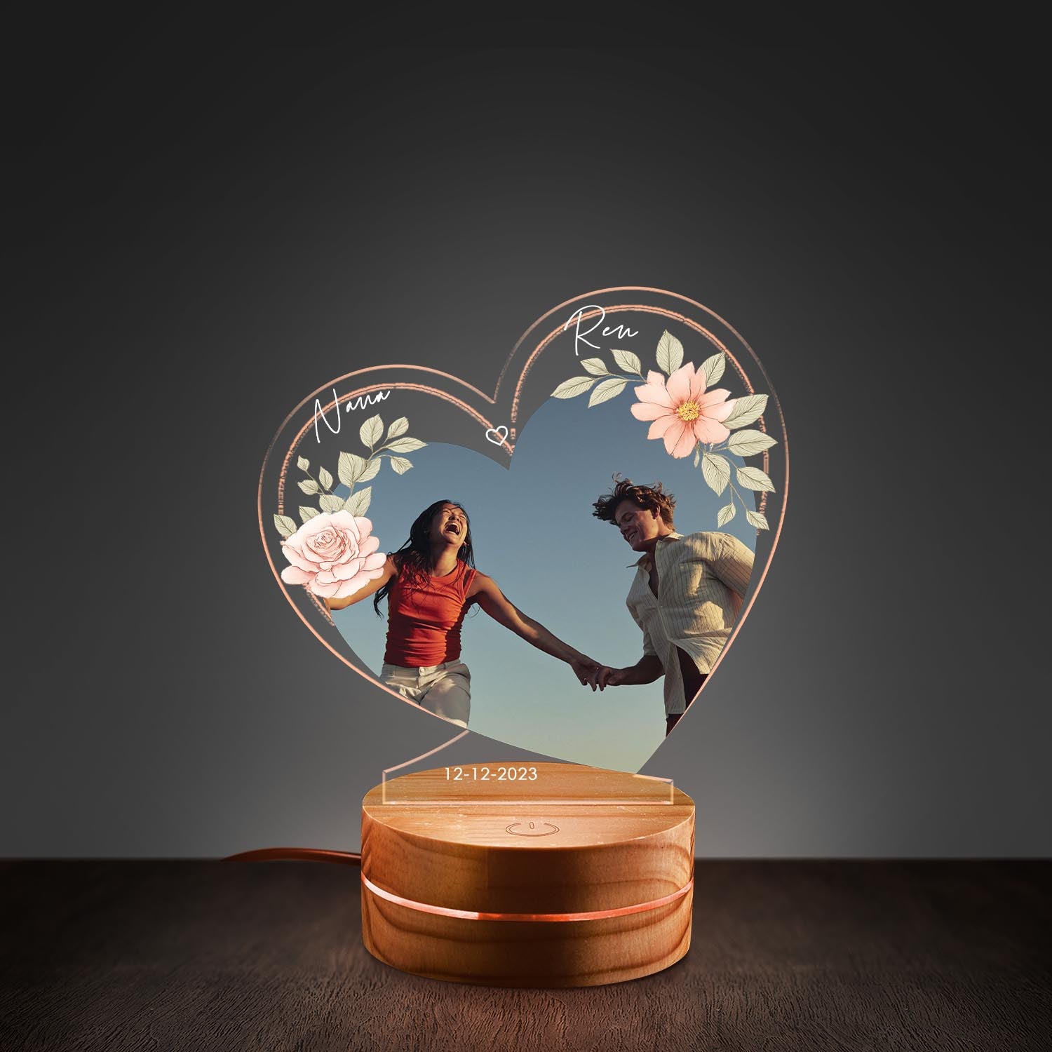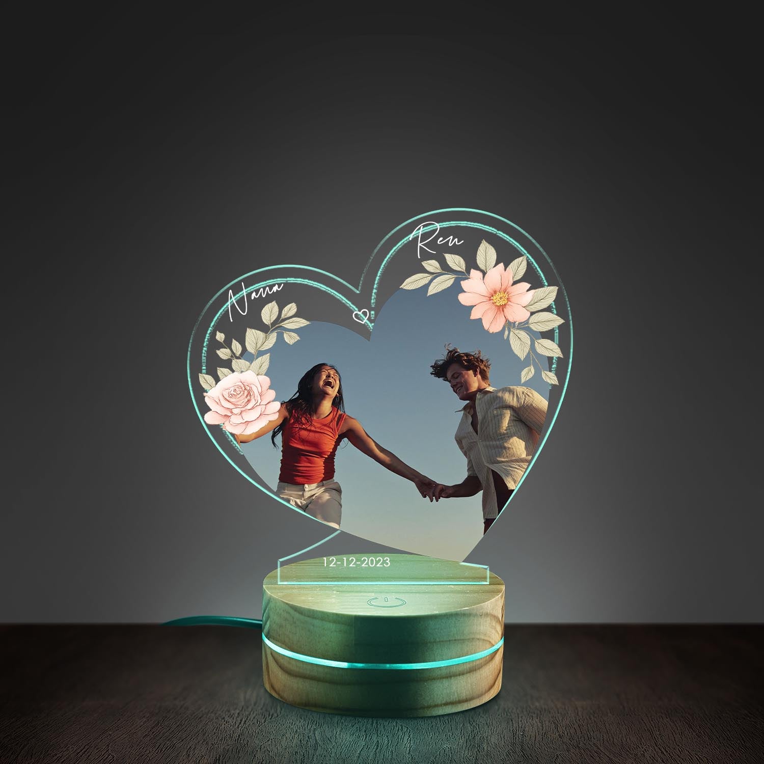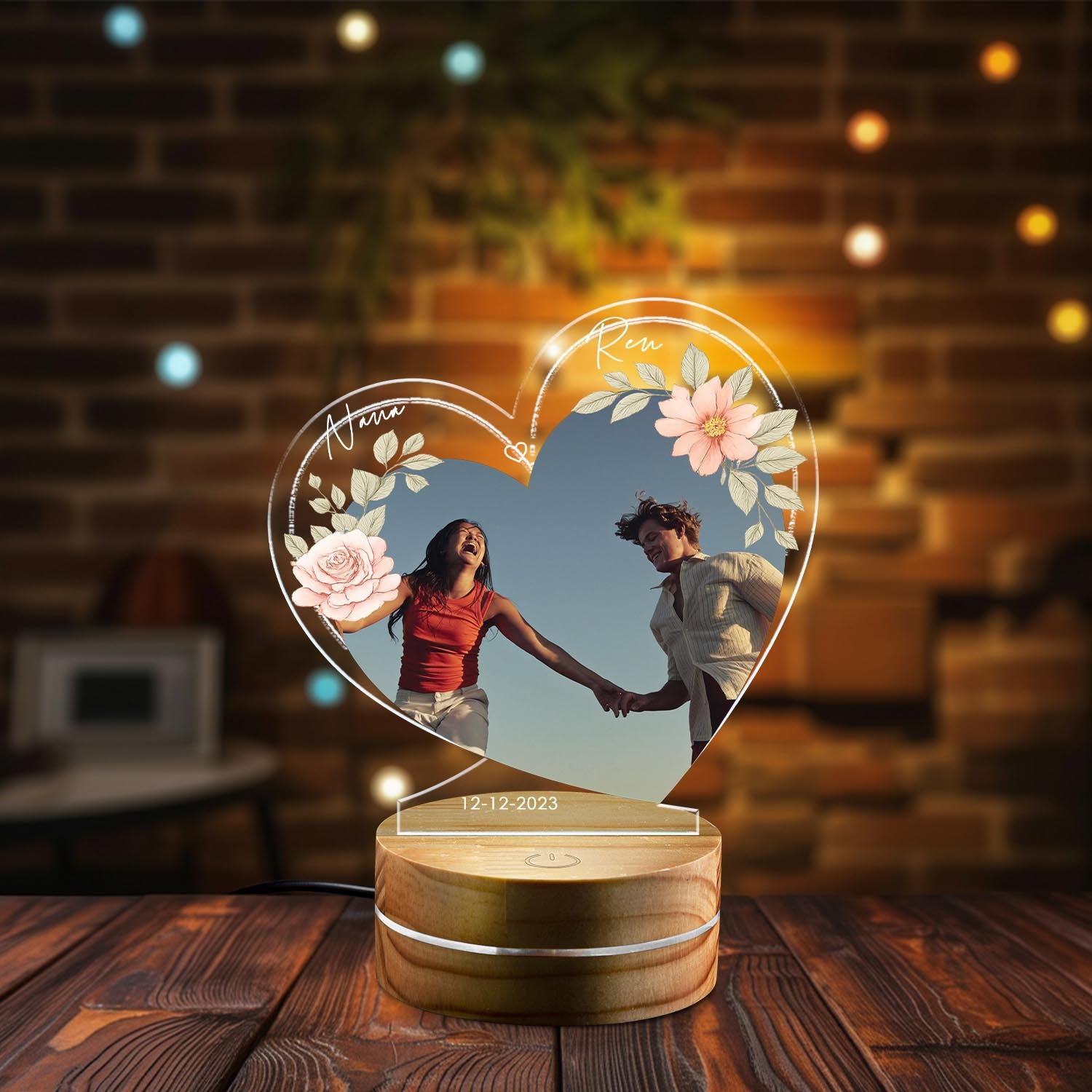 Celebrate Every Beat of Your Love Story In a world of generic gifts, something made specifically for your relationship carries a glow that never fades. Our Custom Heart Photo Night Light is designed for couples who want to immortalize their most cherished moments—from the day they met to their wedding anniversary. Featuring a beautiful heart-shaped acrylic plaque and a premium Round Wooden Base, this lamp elegantly displays your favorite photo alongside your names and that one special date that changed everything. It serves as a high-end, sentimental piece of home decor that turns a simple bedroom or living space into a gallery of your love. Whether it's for Valentine’s Day, a Wedding, or a first anniversary, this is the ultimate "one-of-a-kind" gift that says "I love you" in every color.