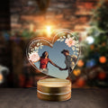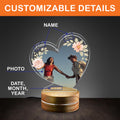 Custom Couple Heart Acrylic Light with Round Wooden Base - Personalized Romantic Keepsake with Photo, Names, and Special Date
