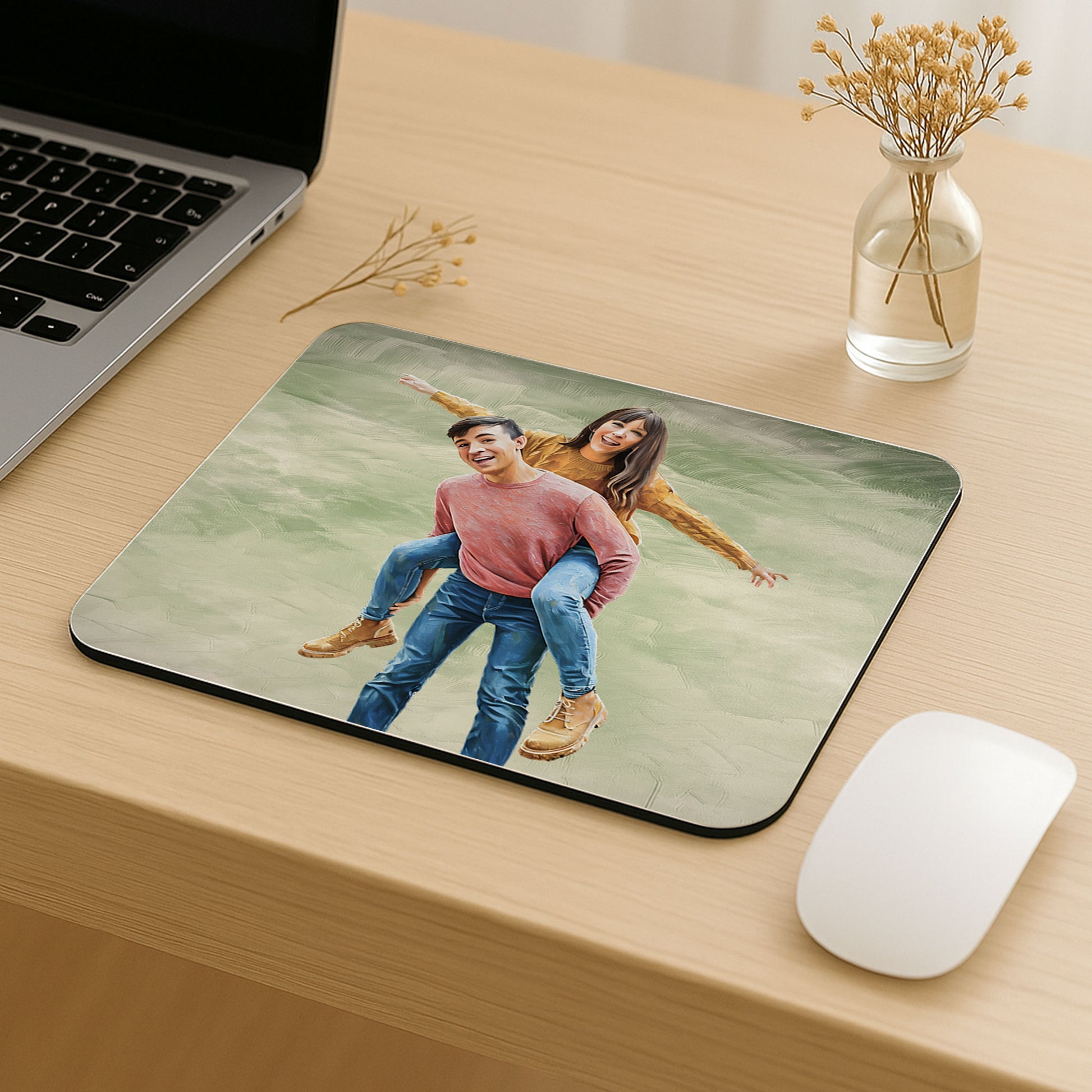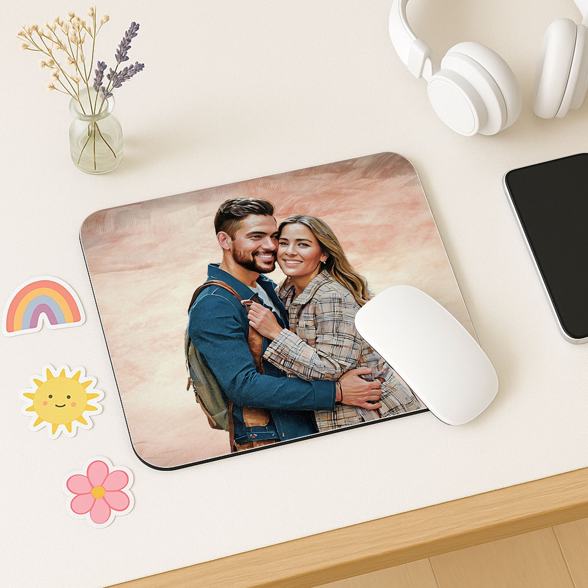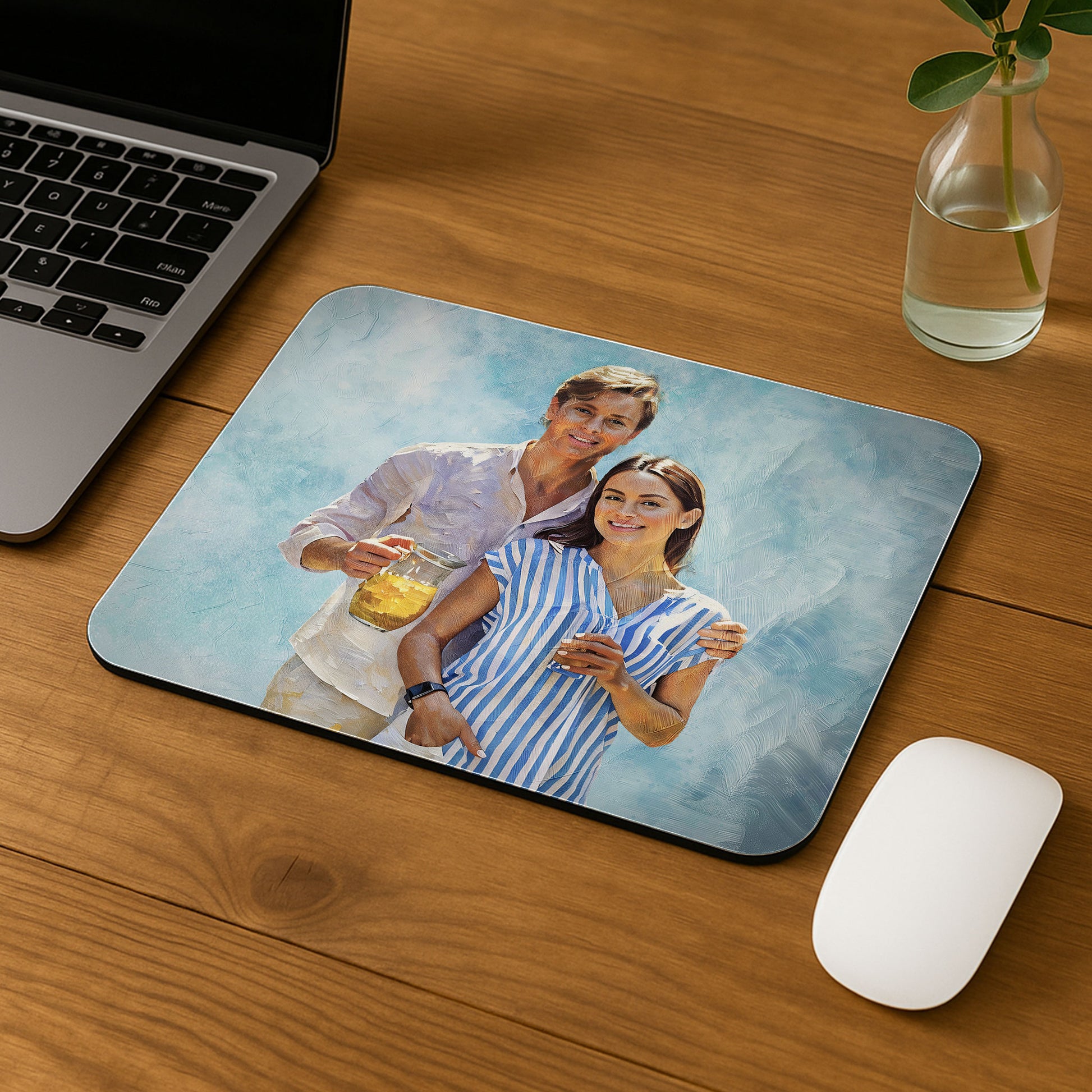 Custom Photo to Art Couple Portrait Rectangle Mouse Pad Oil Painting Style Romantic Anniversary Gift