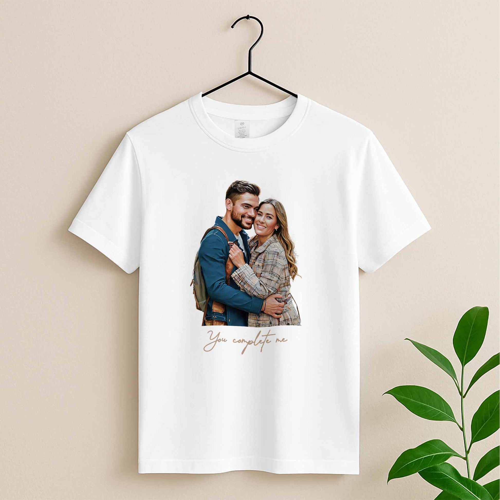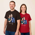 Custom Turn Moment to Art Couple Portrait Unisex Crewneck T-shirt S-5XL Oil Painting Style Romantic Gift