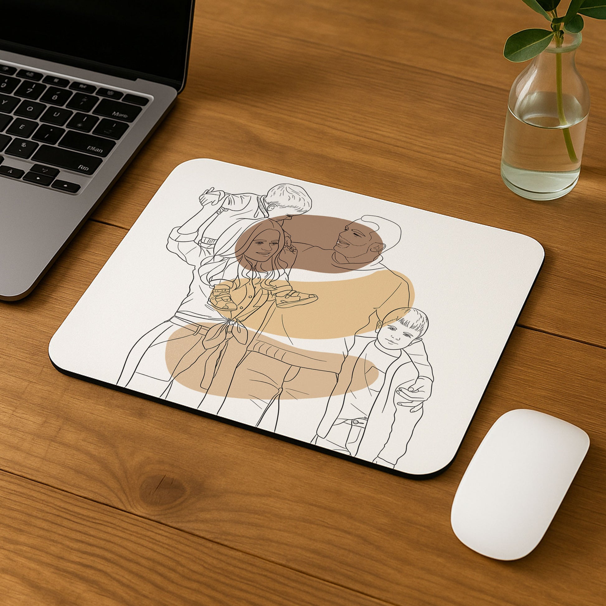 Custom Photo to Line Art Family Portrait Rectangle Mouse Pad Minimalist Style Gift for Father, Mother's Day