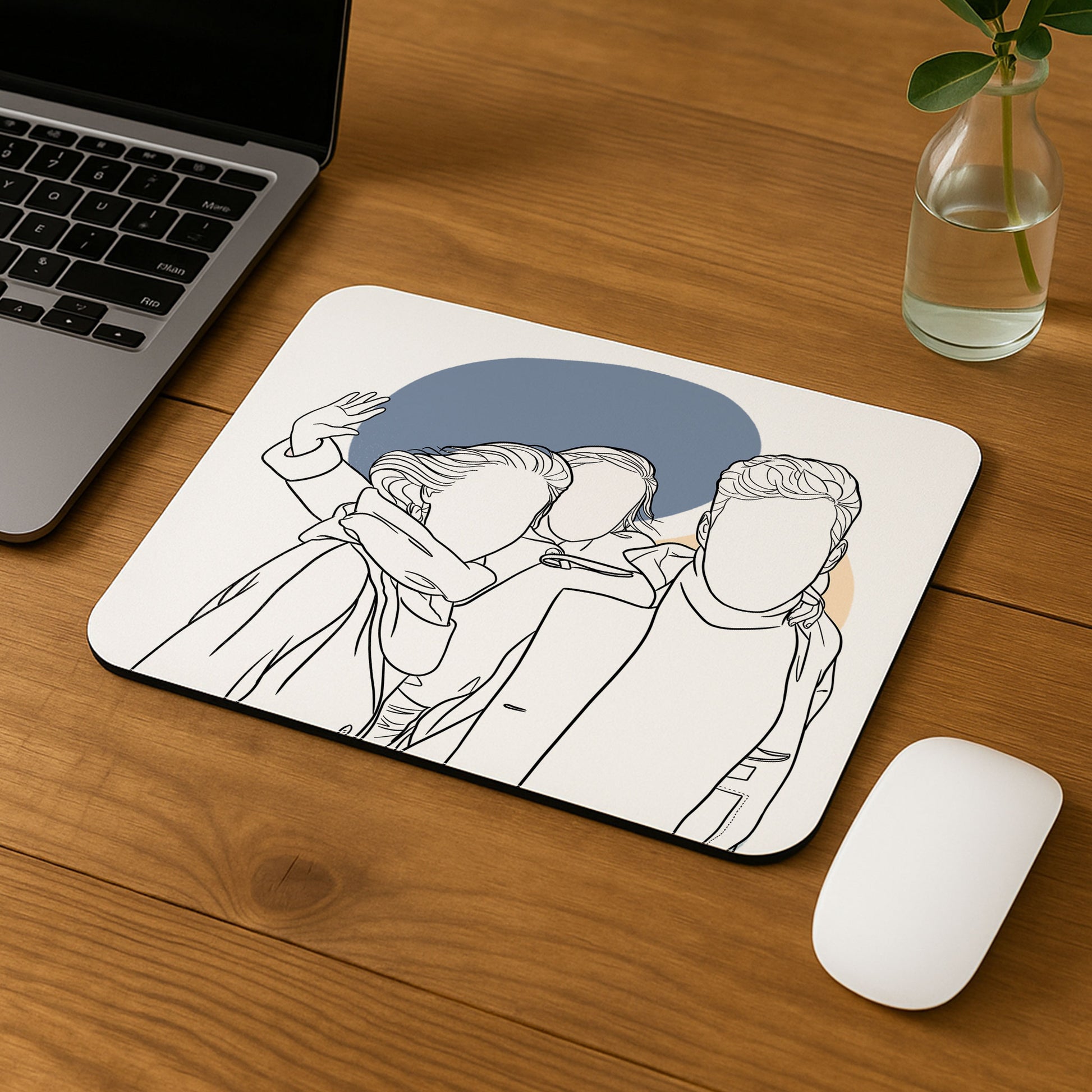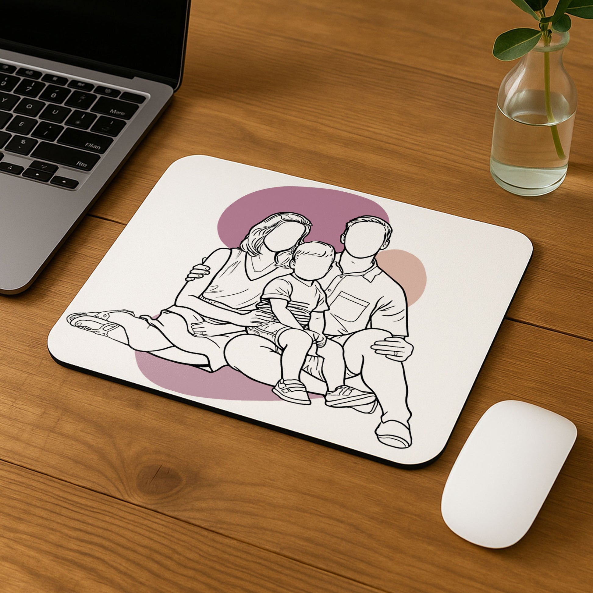Custom Photo to Line Art Family Portrait Rectangle Mouse Pad Hand-Drawn Style Perfect Gift for Parents