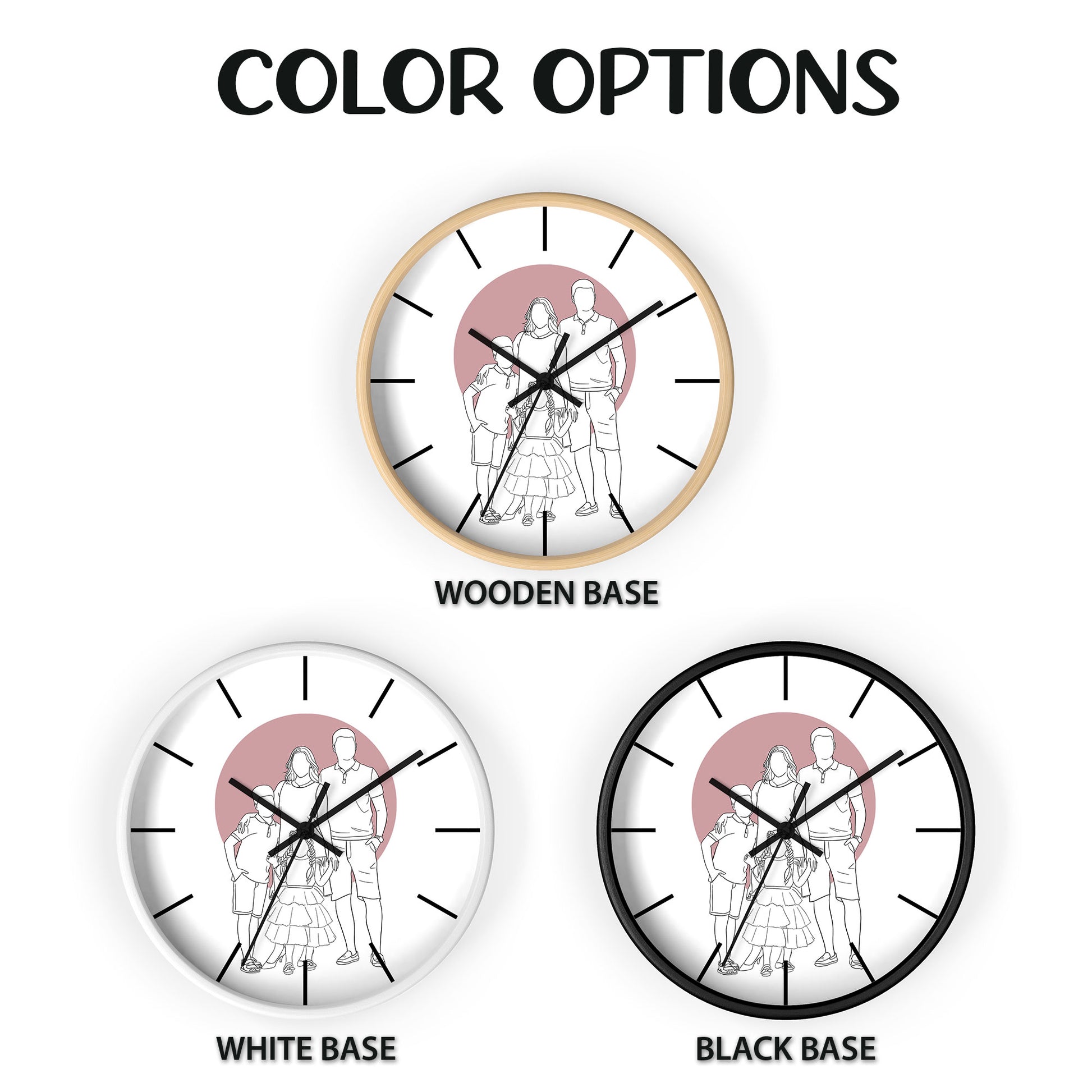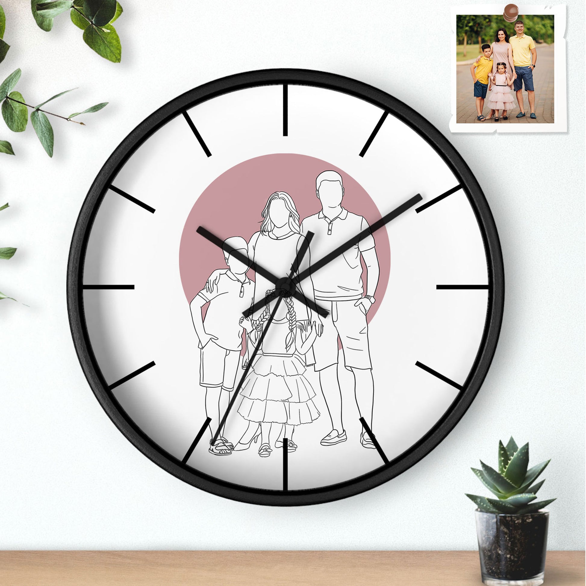 Custom Line Art from Photo Family Picture Wall Clock Minimalist Style Gift for Family