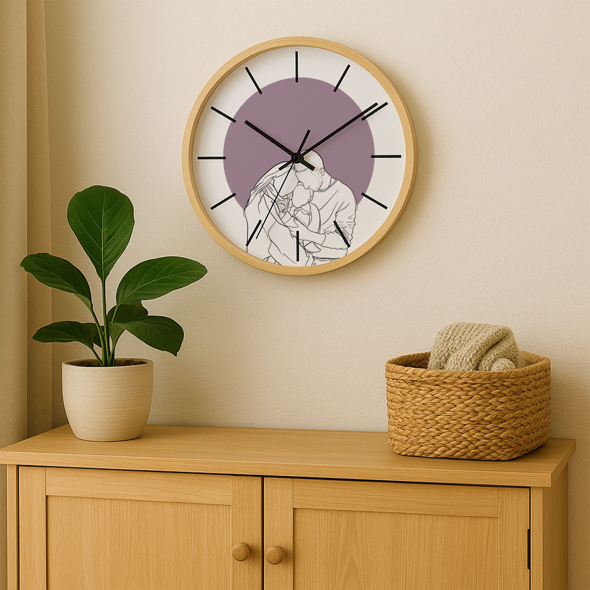 "I wanted to give my family a gift that held the essence of us—not a loud statement, but a quiet truth. I chose a photo from our last reunion, all of us leaning into one another, and had it simplified into clean, meaningful line art. Now, it hangs in our hallway as a clock, its hands moving softly over our minimalist forms. Every time I pass by, I see us reduced to our purest connections—just lines and love. The gentle ticking marks the time we share, a constant reminder that family isn’t about complexity, but the beautiful simplicity of belonging to one another."