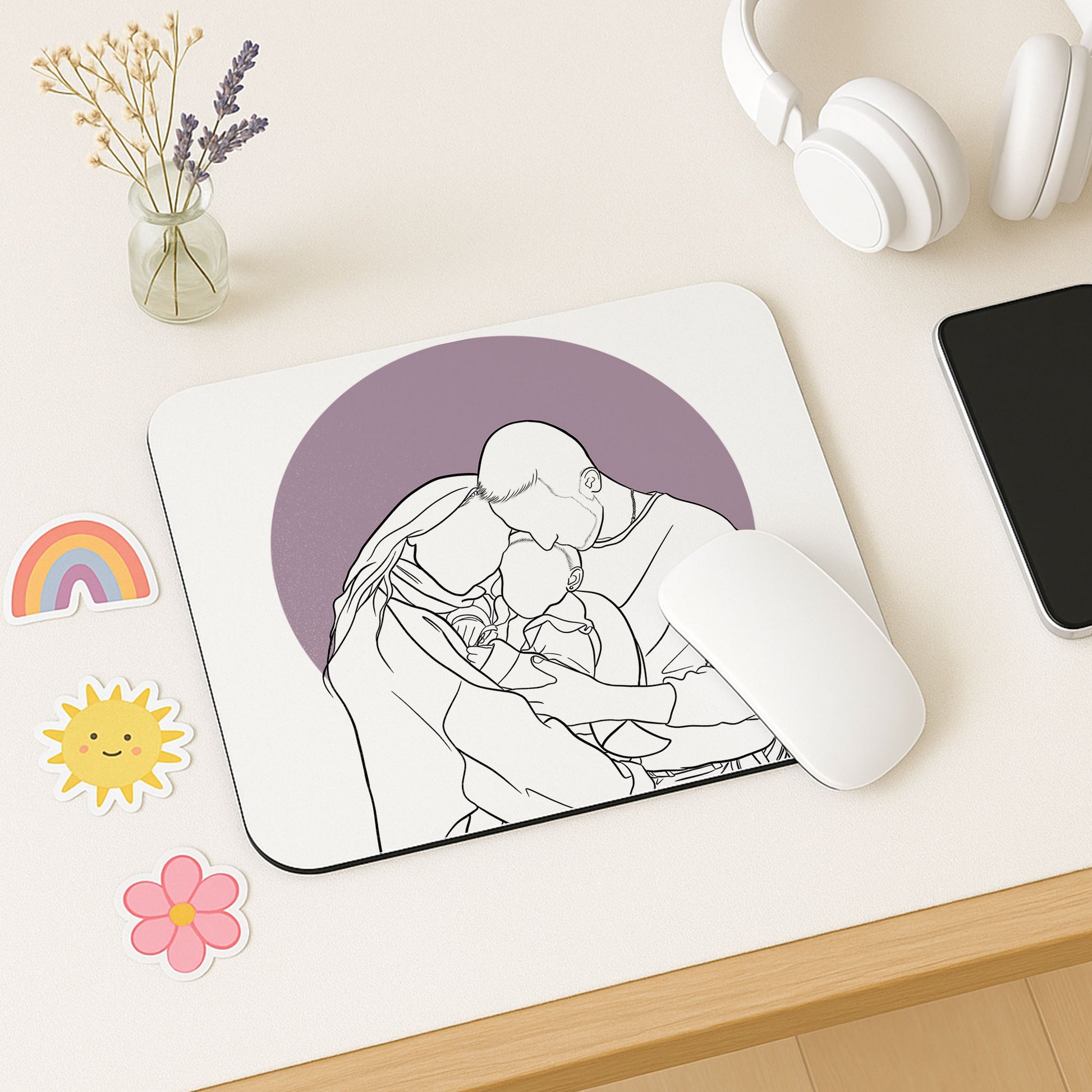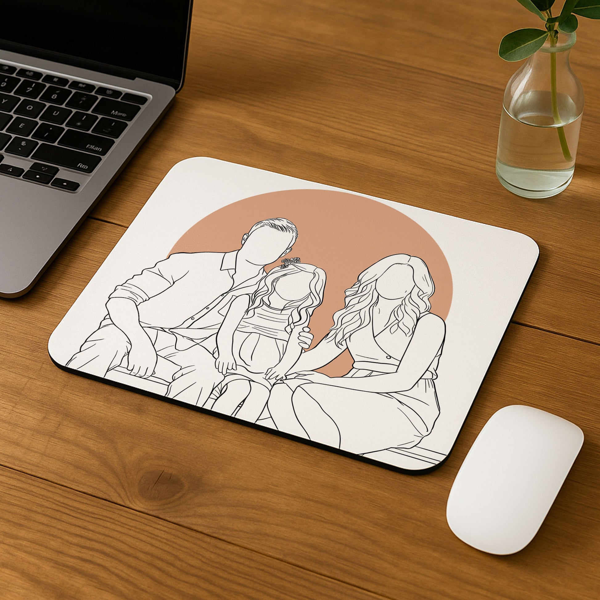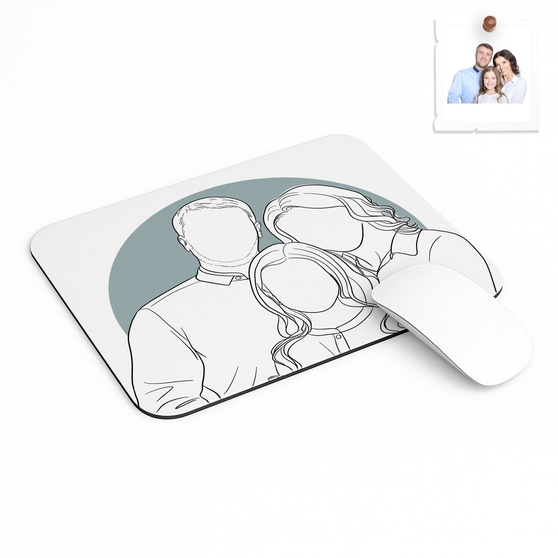 Custom Photo to Line Art Family Picture Rectangle Mouse Pad Minimalist Style Anniversary Gift for Parents