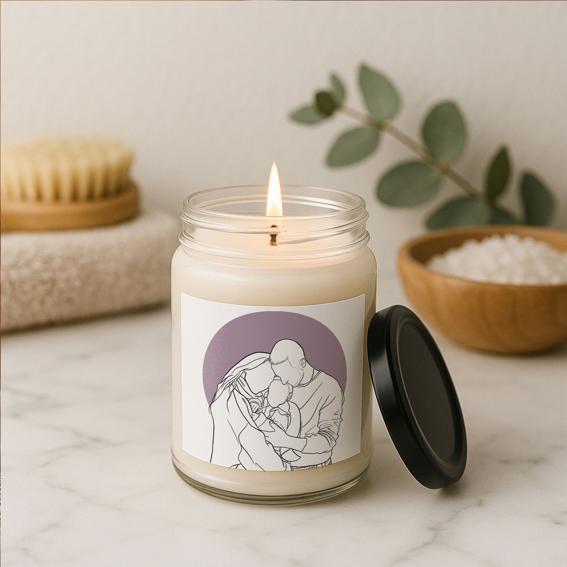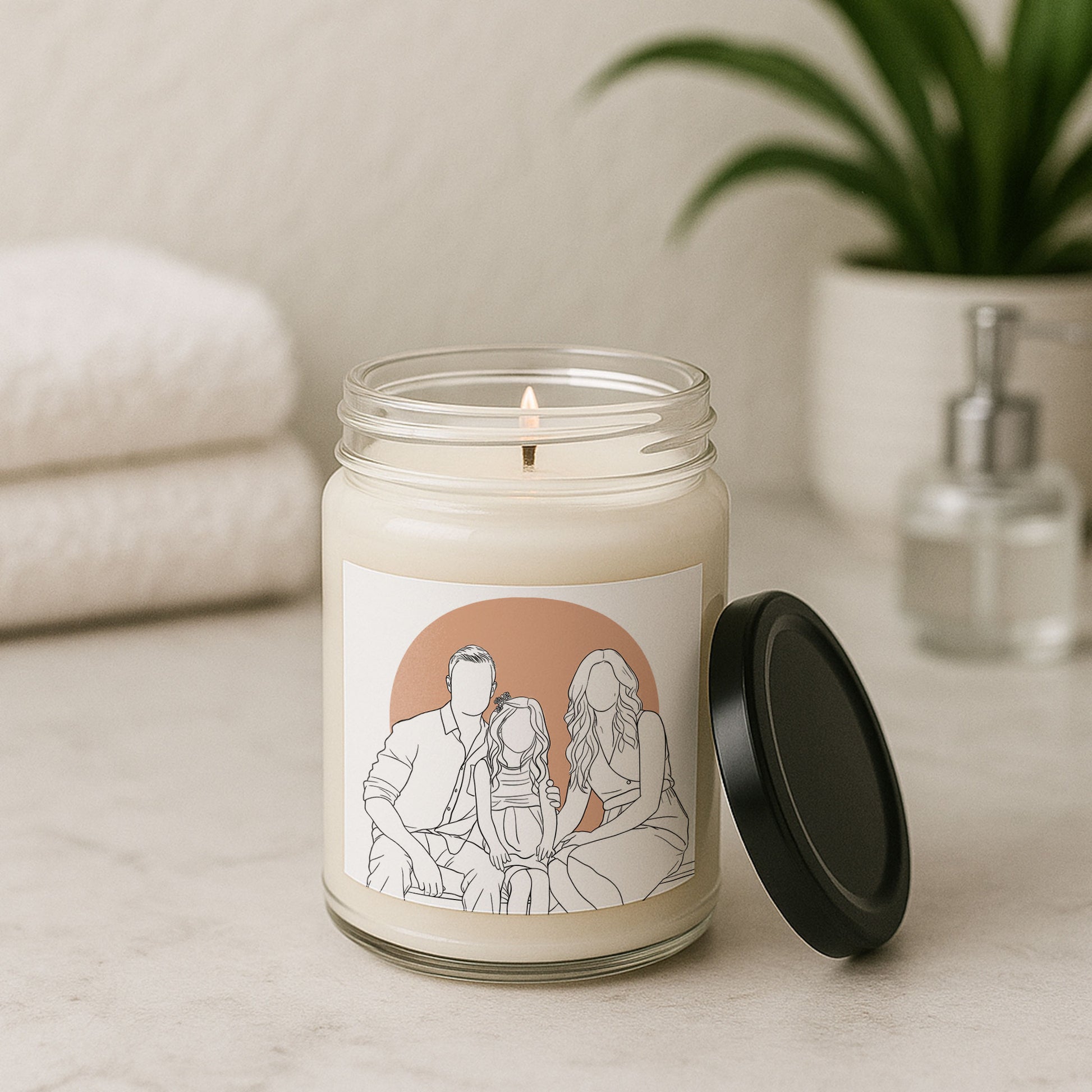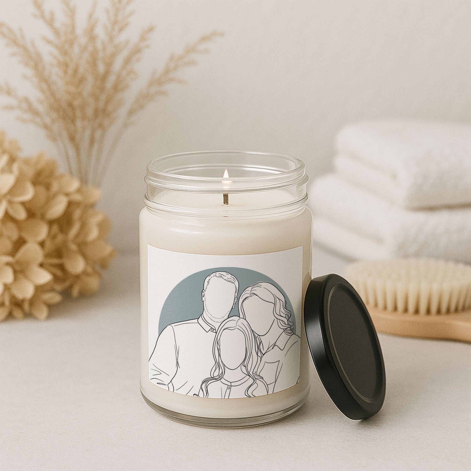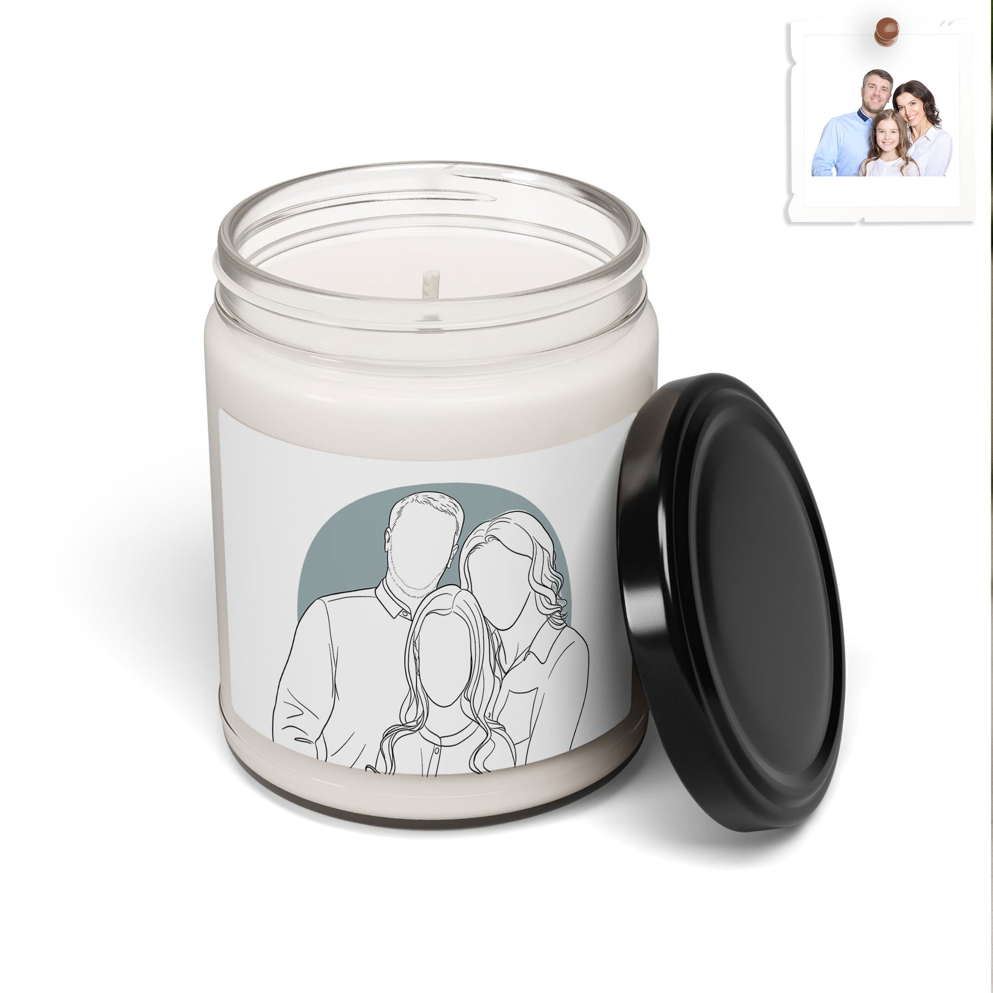 Custom Turn Photo into Art Family Portrait 9oz. Scented Soy Candle Line Drawing Style Fun Loving Home Gift