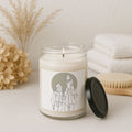 Elevate your space with the warm glow and immersive aromas of our premium soy candles. Hand-poured into a sleek 9oz glass jar, each candle is crafted with care using a 100% natural soy wax blend, cotton wick, and finished with a glossy permanent label featuring your custom design.