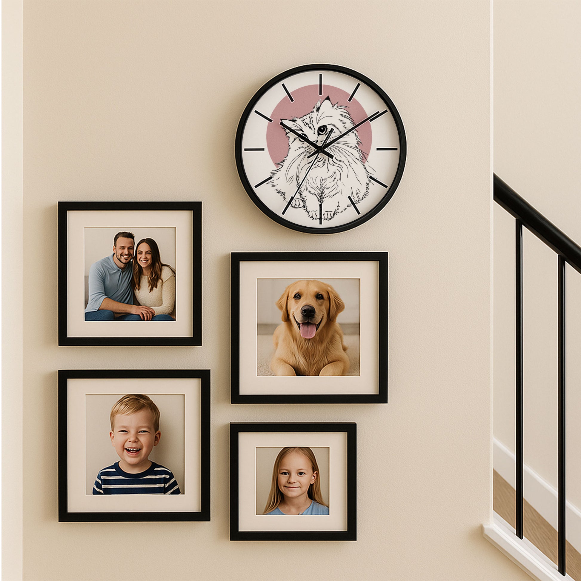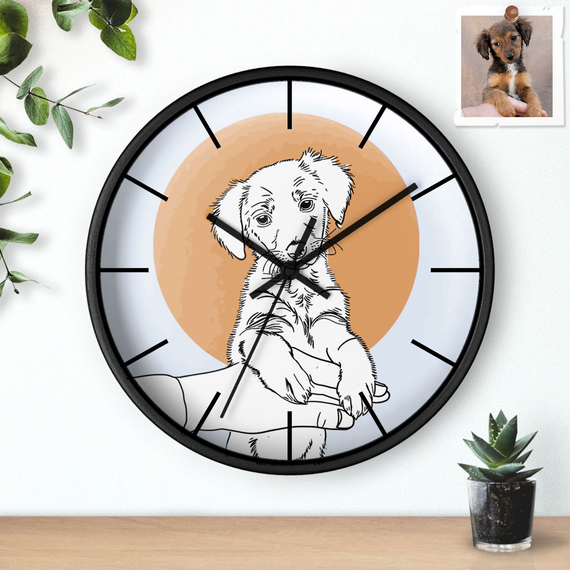 Custom Photo to Line Art Pet Portrait Wall Clock Minimalist Style Pet Lover Gift