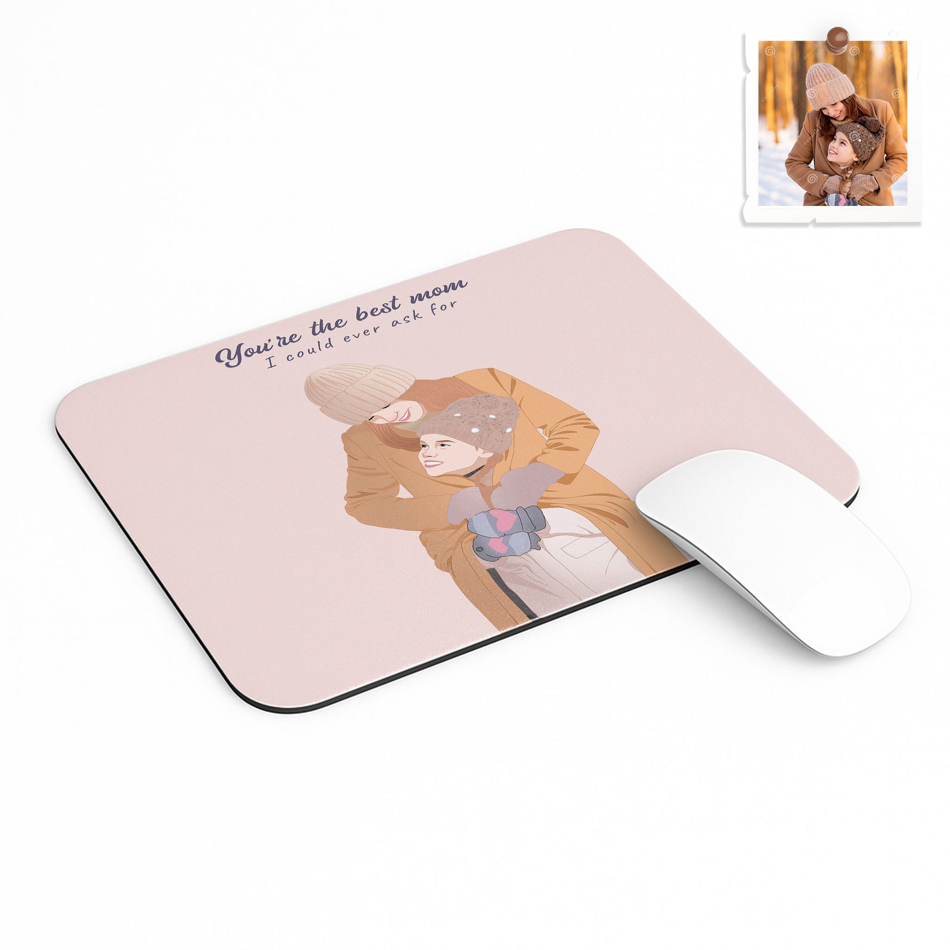 Custom Portrait from Photo Family Picture Rectangle Mouse Pad Illustration Style Mother's Day Gift