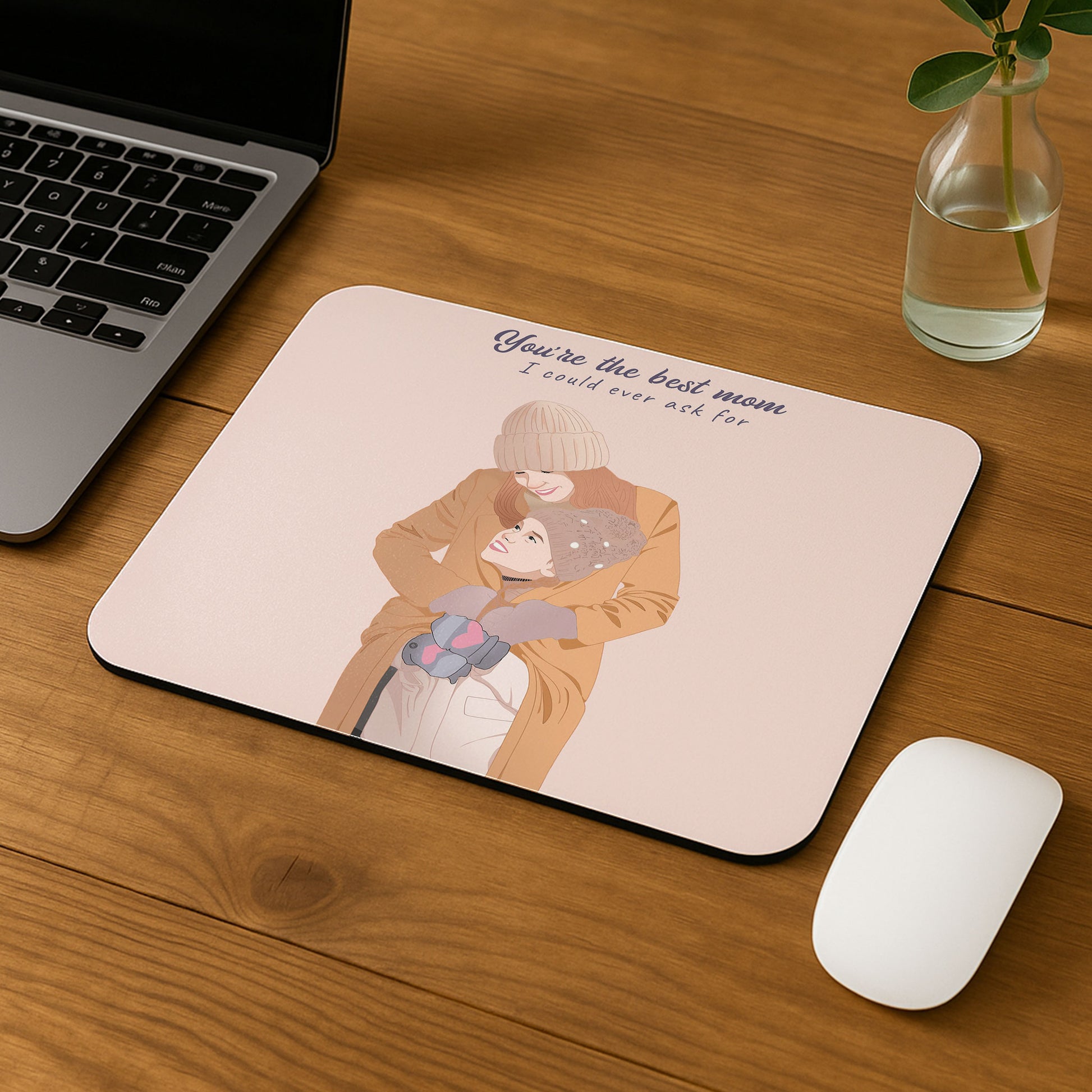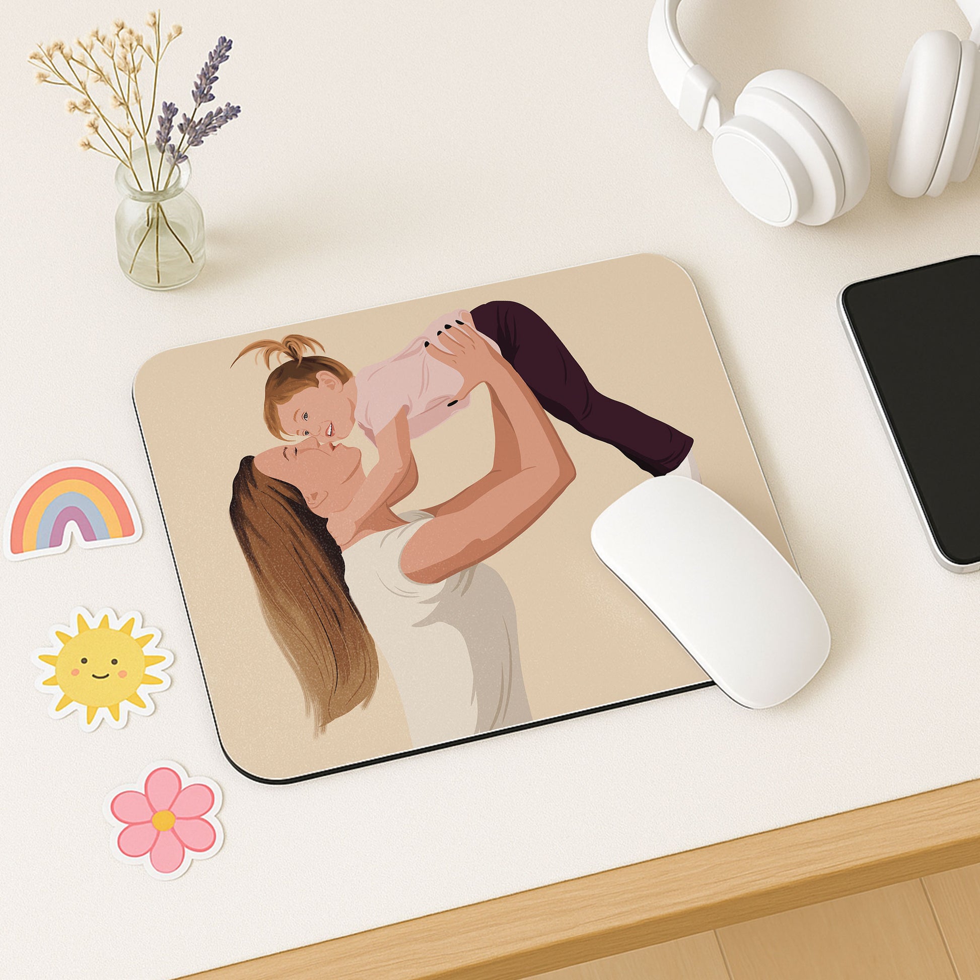 "This Mother's Day, I wanted to create something that held the softness of her presence long after the flowers faded. I chose an illustration style that felt like a warm memory—a painted portrait of us, tender and dreamlike, as if made from starlight and gratitude. Now it rests beneath her hand, a constant companion to her daily routines. Every glance feels like a quiet thank you, a gentle embrace woven into her workflow. It’s more than a gift; it’s a piece of our bond, forever alive beneath her fingertips—a tribute to the mother who painted my world with love."