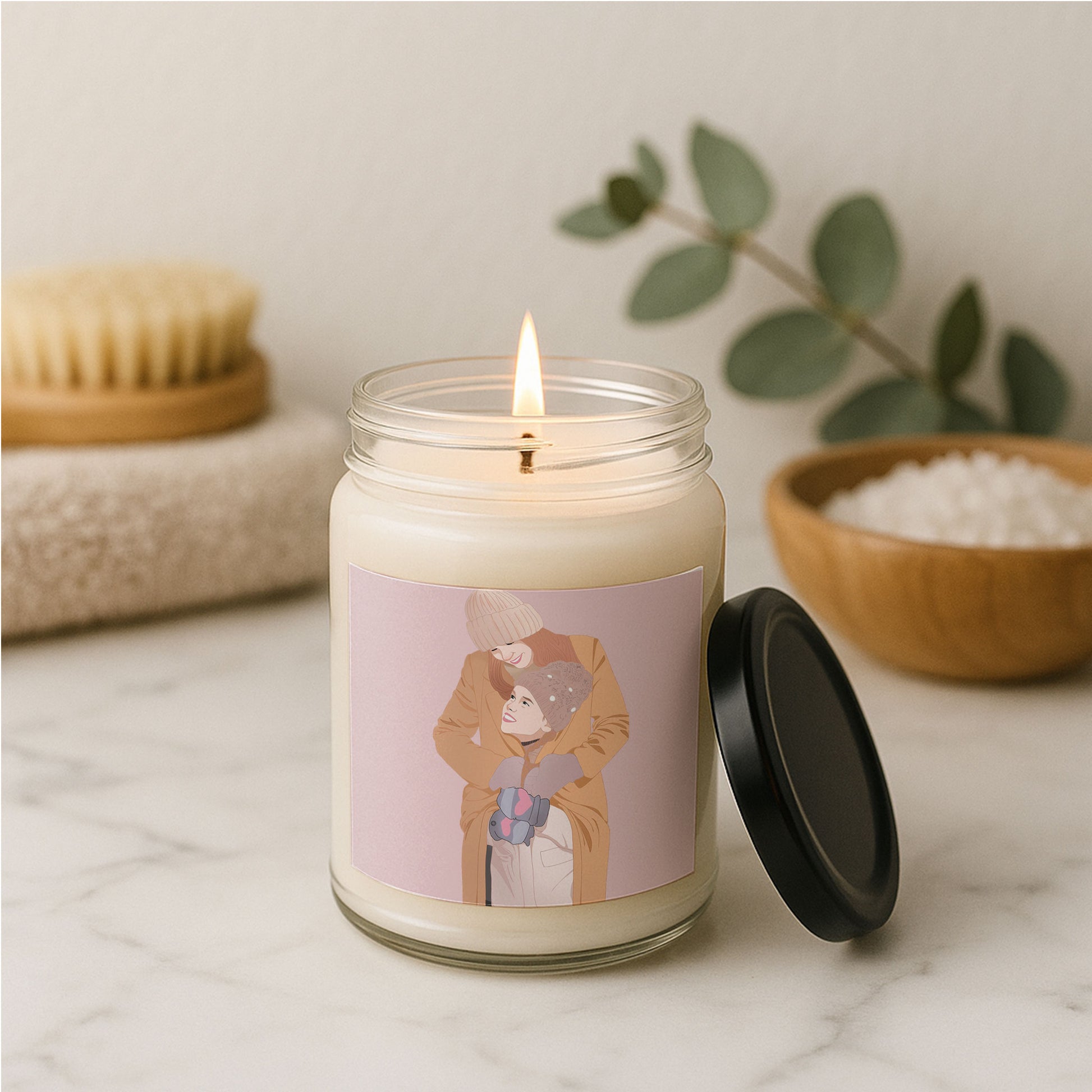 "I wanted to give my mom something that held more meaning than flowers this Mother's Day. I chose a photo of us from my childhood, her teaching me how to tie my shoes, and had it transformed into a soft, detailed illustration. When she saw it, her breath caught—there we were, forever preserved in that patient, loving moment. Now, when she lights the candle, the gentle scent of gardenia and warm sugar fills the room, and the flame illuminates our illustrated forms. It’s more than a gift; it’s a return to her guidance, a glowing thank you for every lesson given with love."