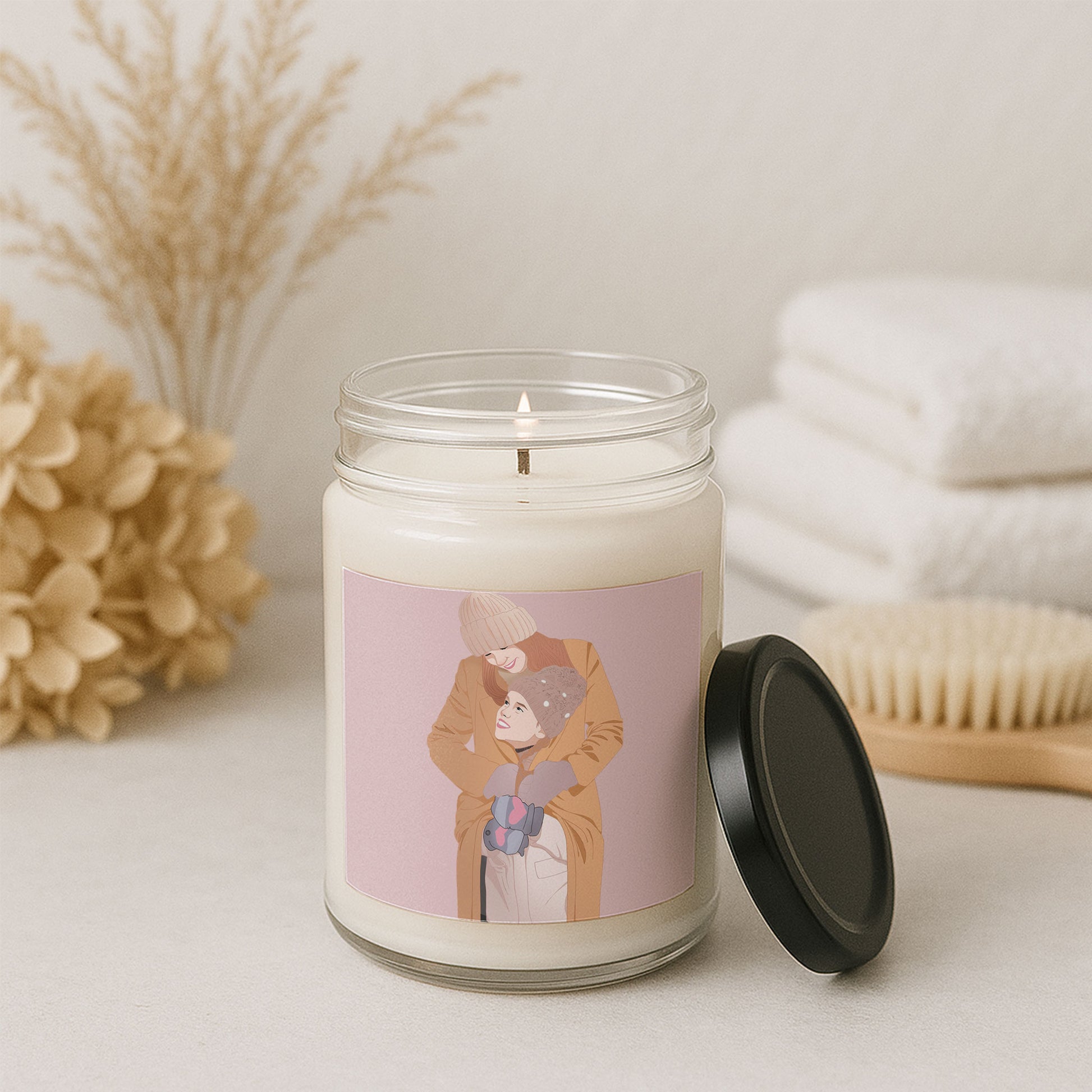 Custom Portrait from Photo Family Picture 9oz. Scented Soy Candle Illustration Style Mother's Day Gift