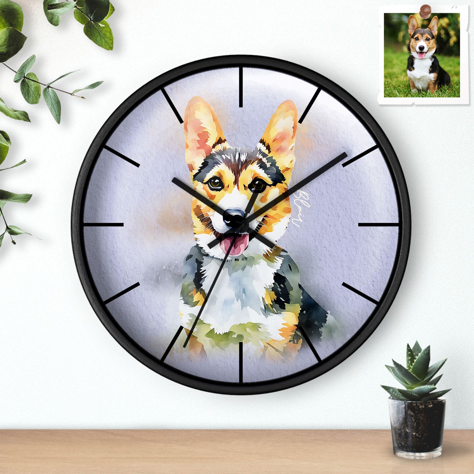 Custom Photo to Art Pet Portrait Wall Clock Watercolor Style Pet Lover Gift