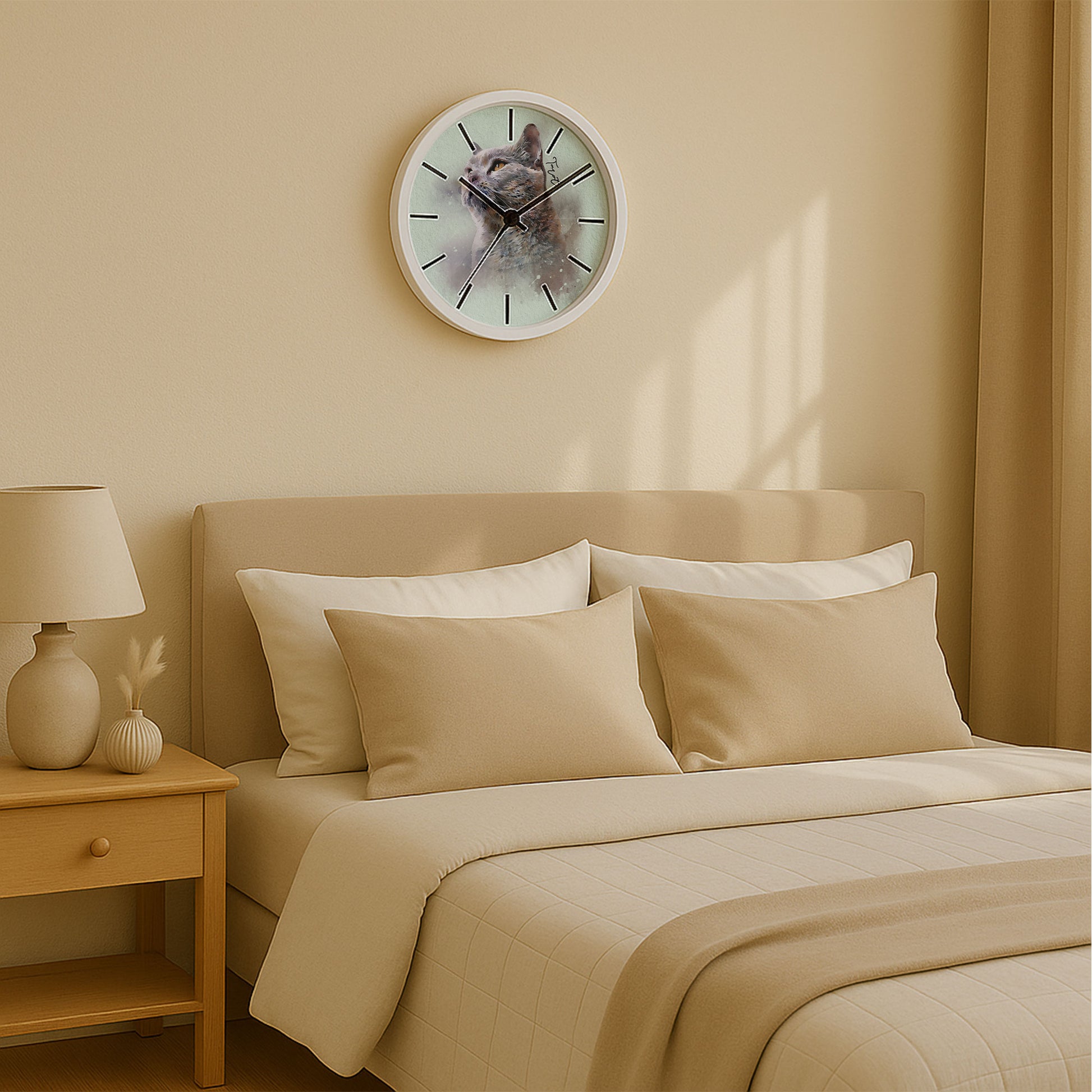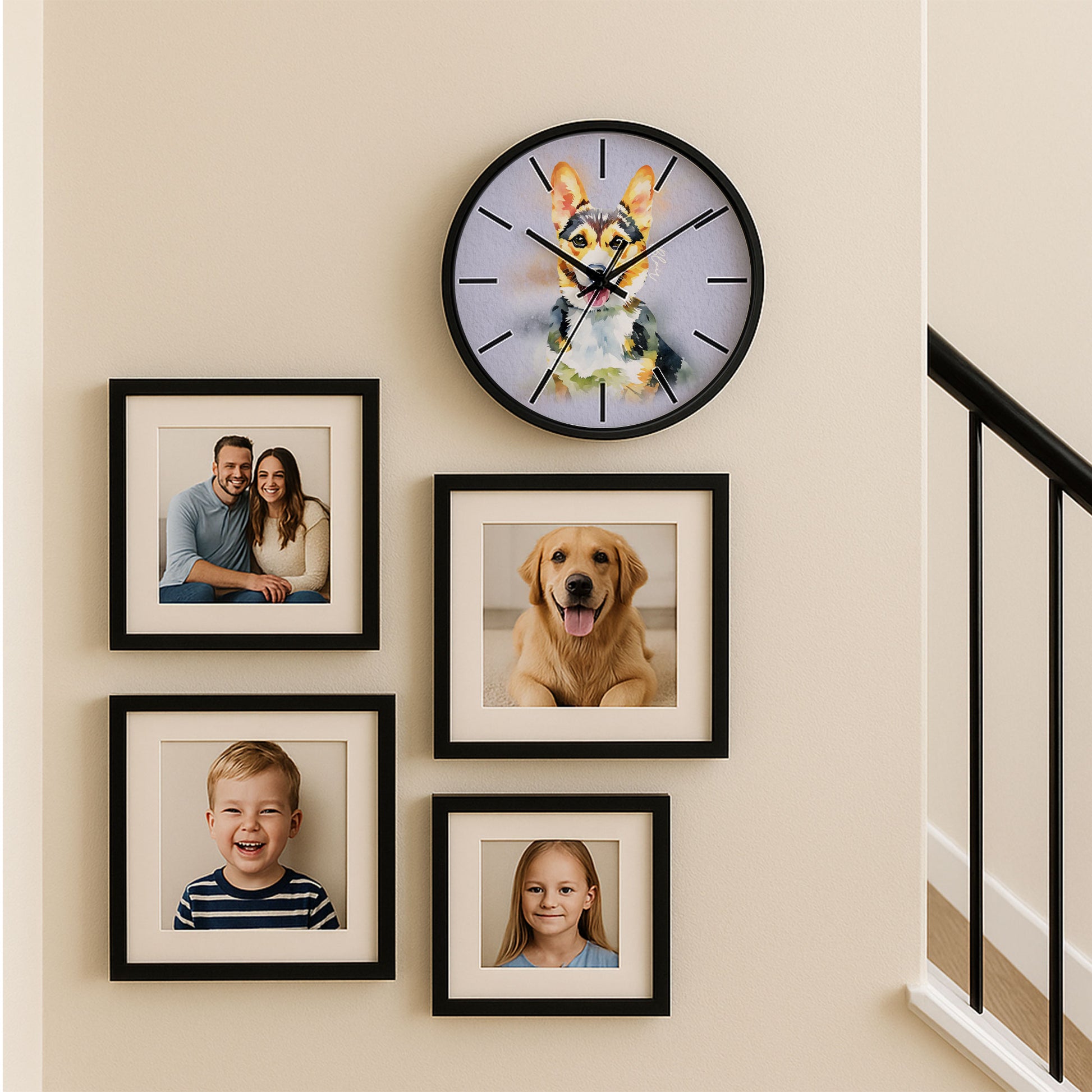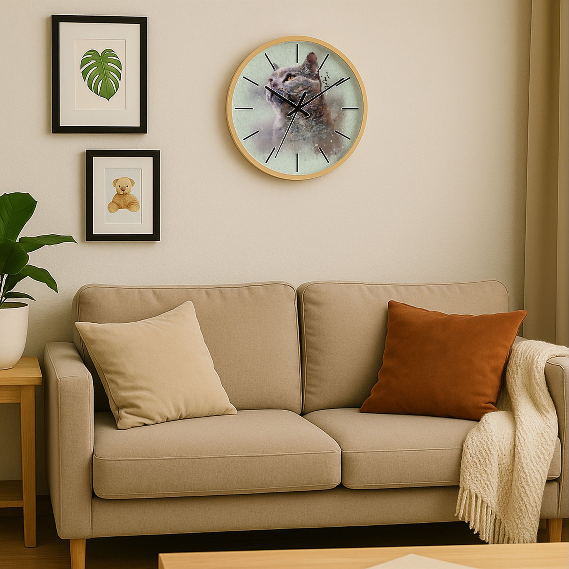 "Time moves forward, but my love for them remains a constant, gentle presence. I wanted to capture that feeling in something more lasting than a photograph—to express the softness of their fur, the quiet trust in their eyes, in a way that felt truly personal. The watercolor art, with its delicate blends and tender strokes, translated our bond into something visual and heartfelt. Now, as I watch the hands circle their portrait, each passing moment feels marked not by numbers, but by the enduring, beautiful love they brings into my life every single day."