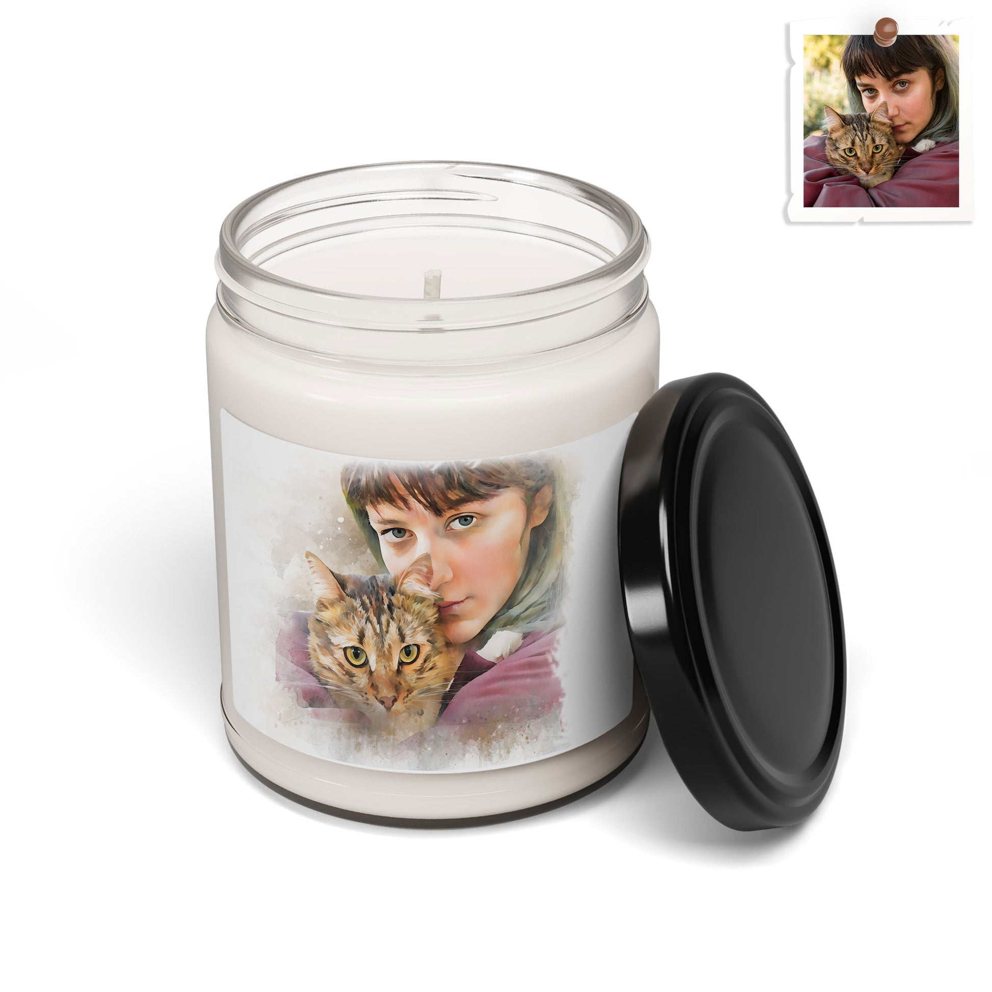 Custom Picture to Drawing Pet Portrait 9oz. Scented Soy Candle Watercolor Style Pet Lover Gift