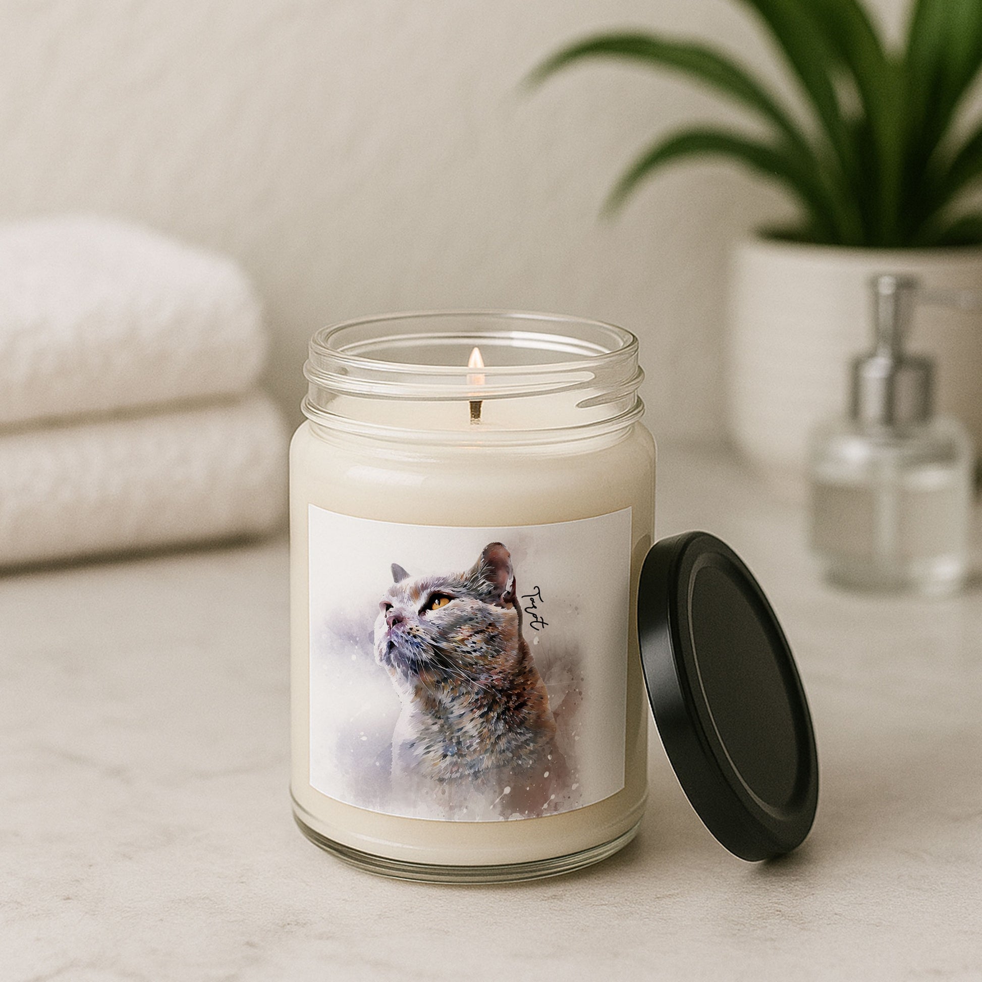 "There are no words grand enough to capture what my pet means to me, but the soft, flowing hues of watercolor come close. Each brushstroke feels like a gentle caress, a tender translation of the love I hold for them—a love that shows in every quiet glance and shared comfort. Now, when the gentle light glows and a soothing fragrance rises, it’s as if my affection takes form, warming the room not just with scent and light, but with the unspoken bond we’ve built, day by beautiful day."