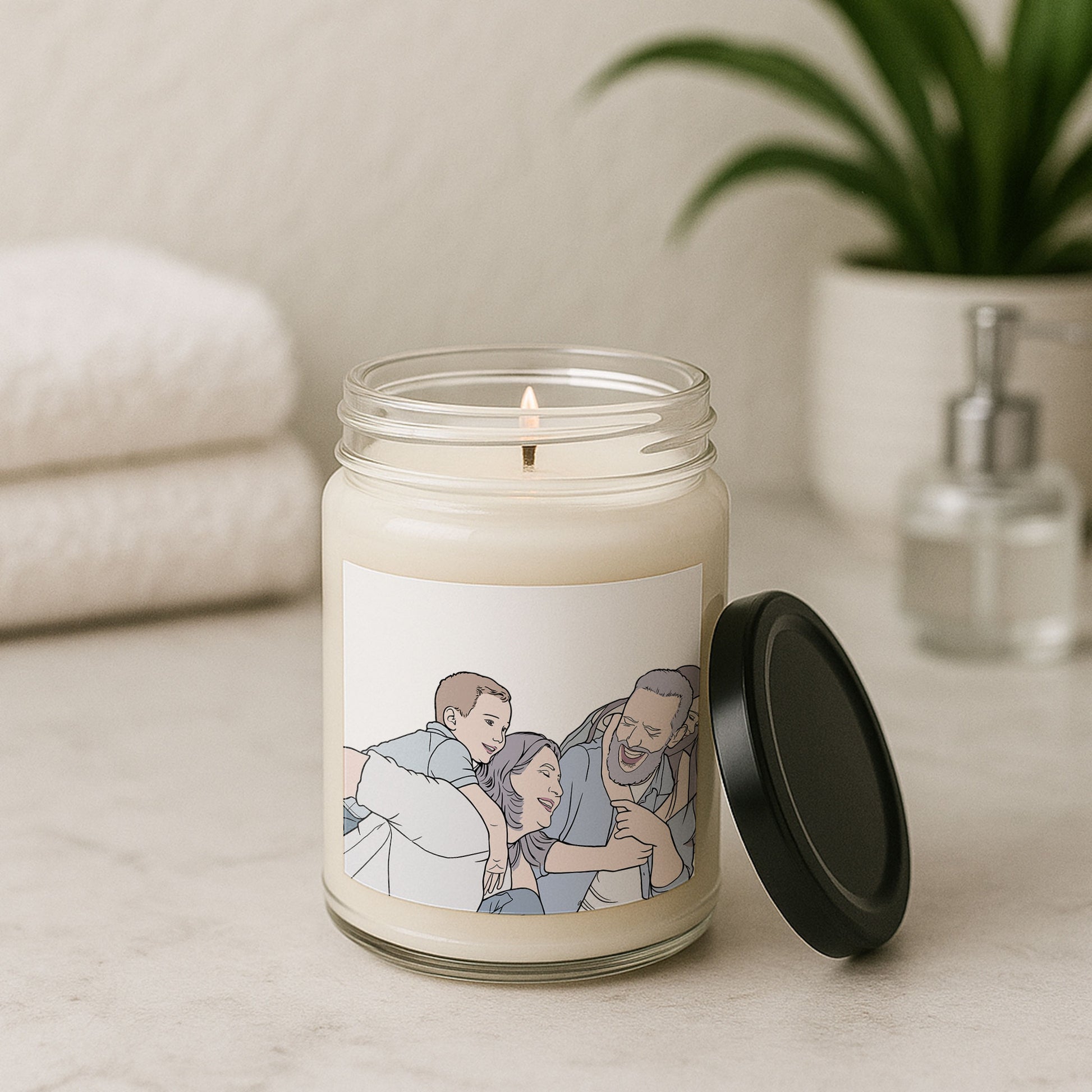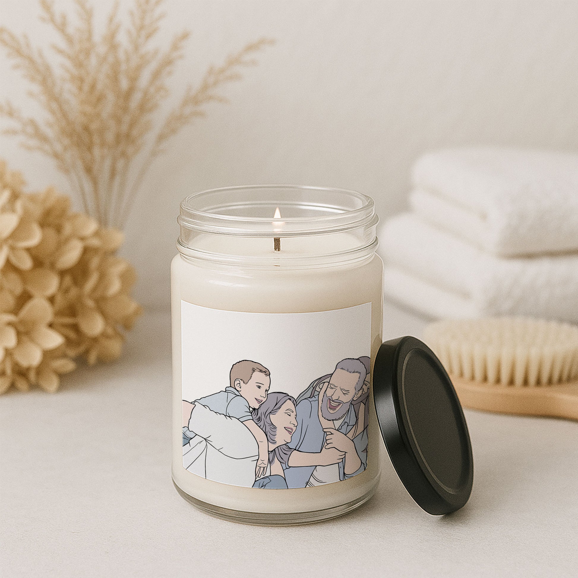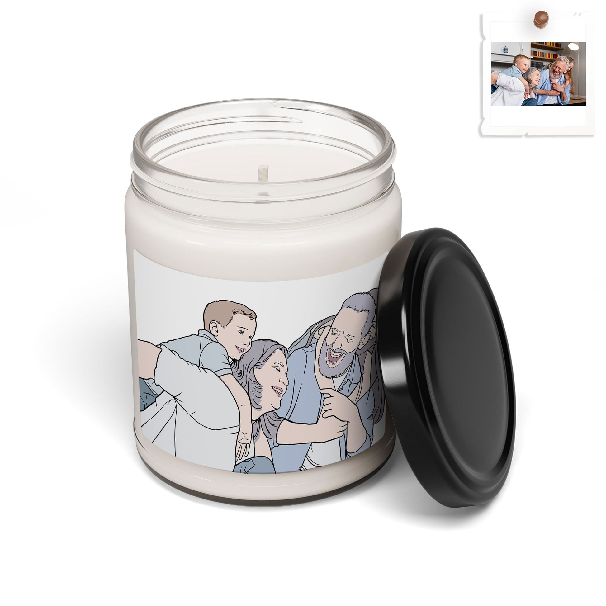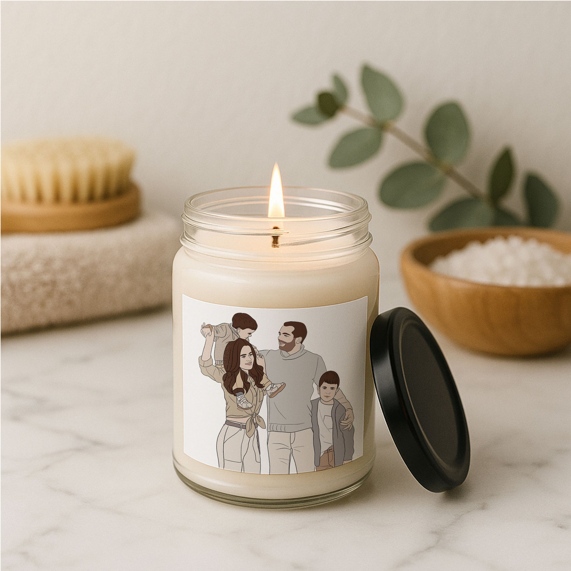 Customized Illustration from Photo Family Portrait 9oz. Scented Soy Candle Doodle Style Gift for Family