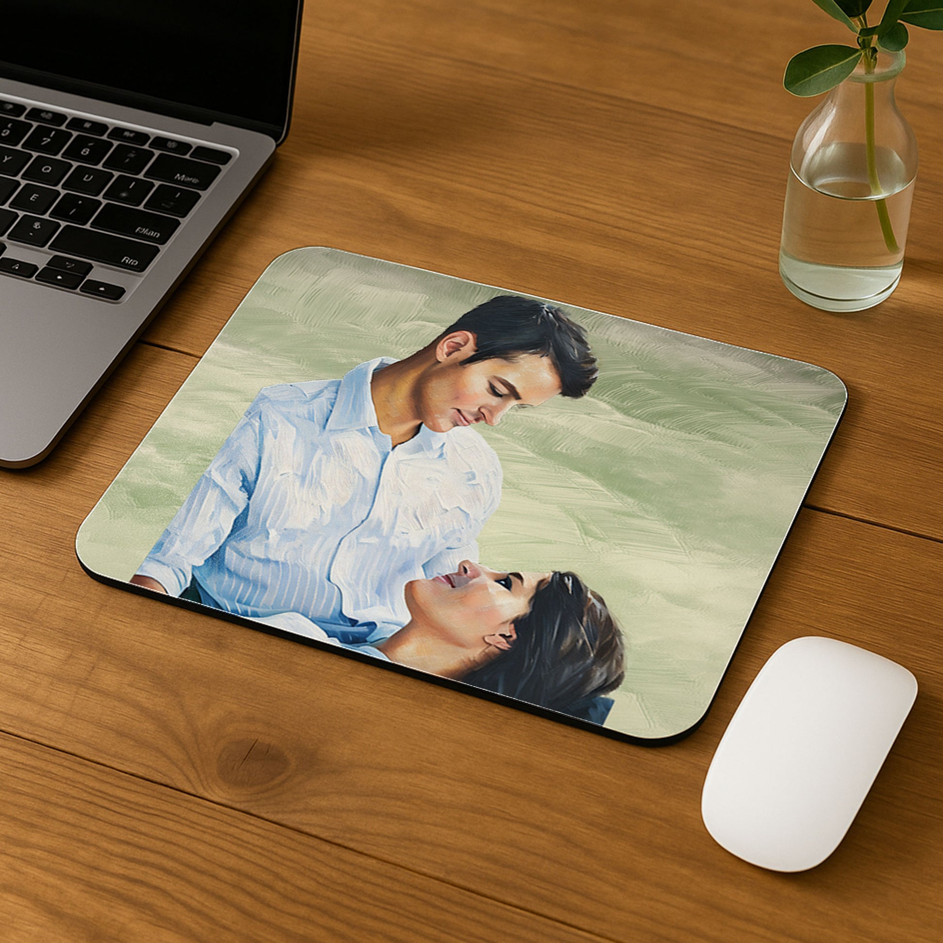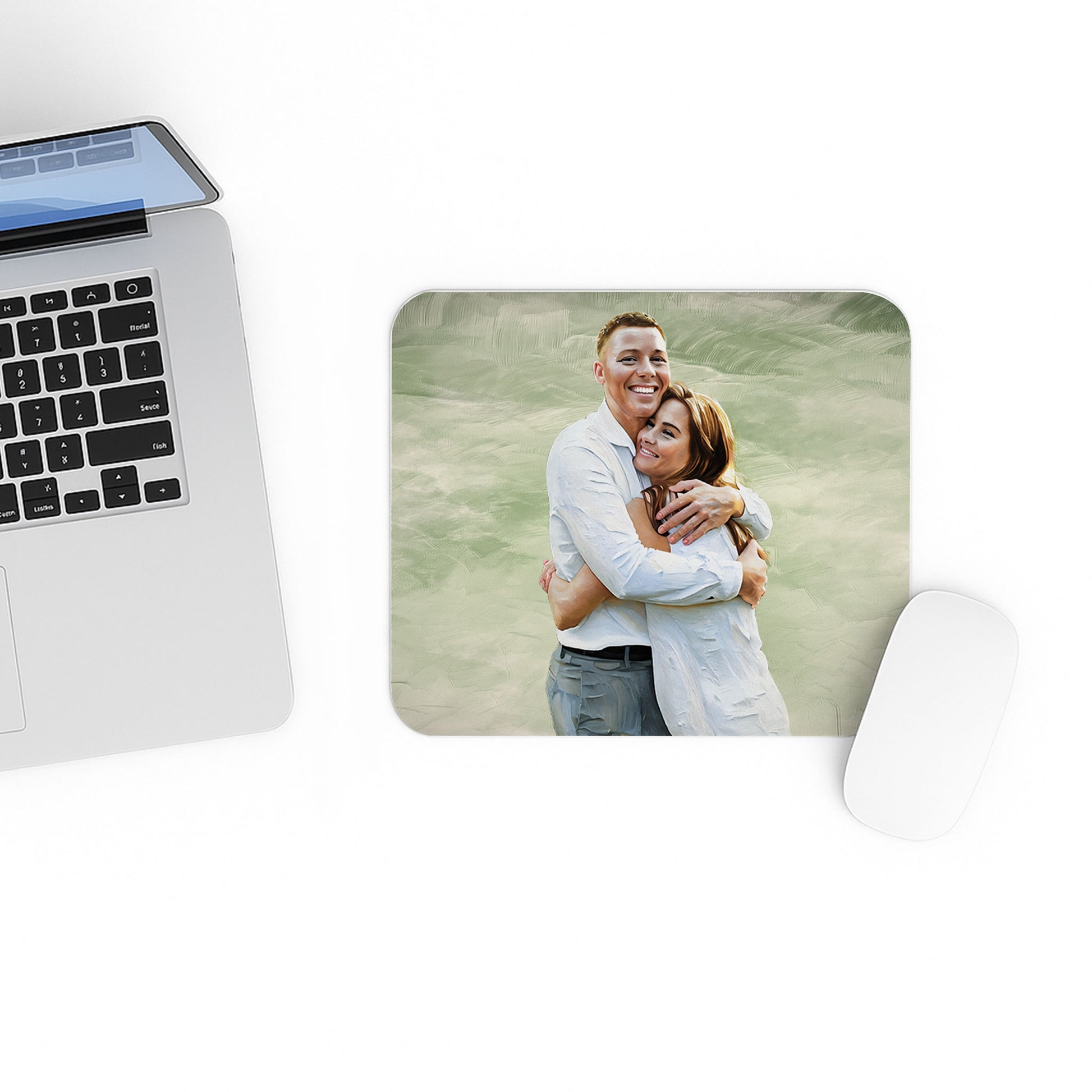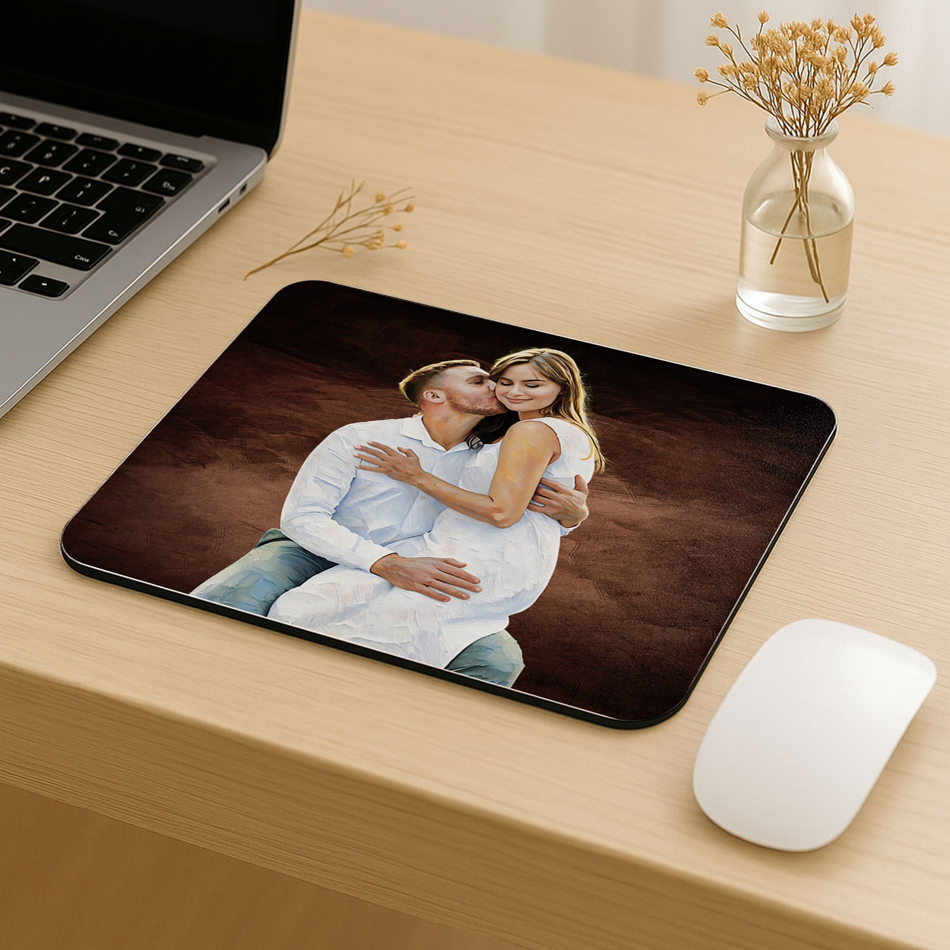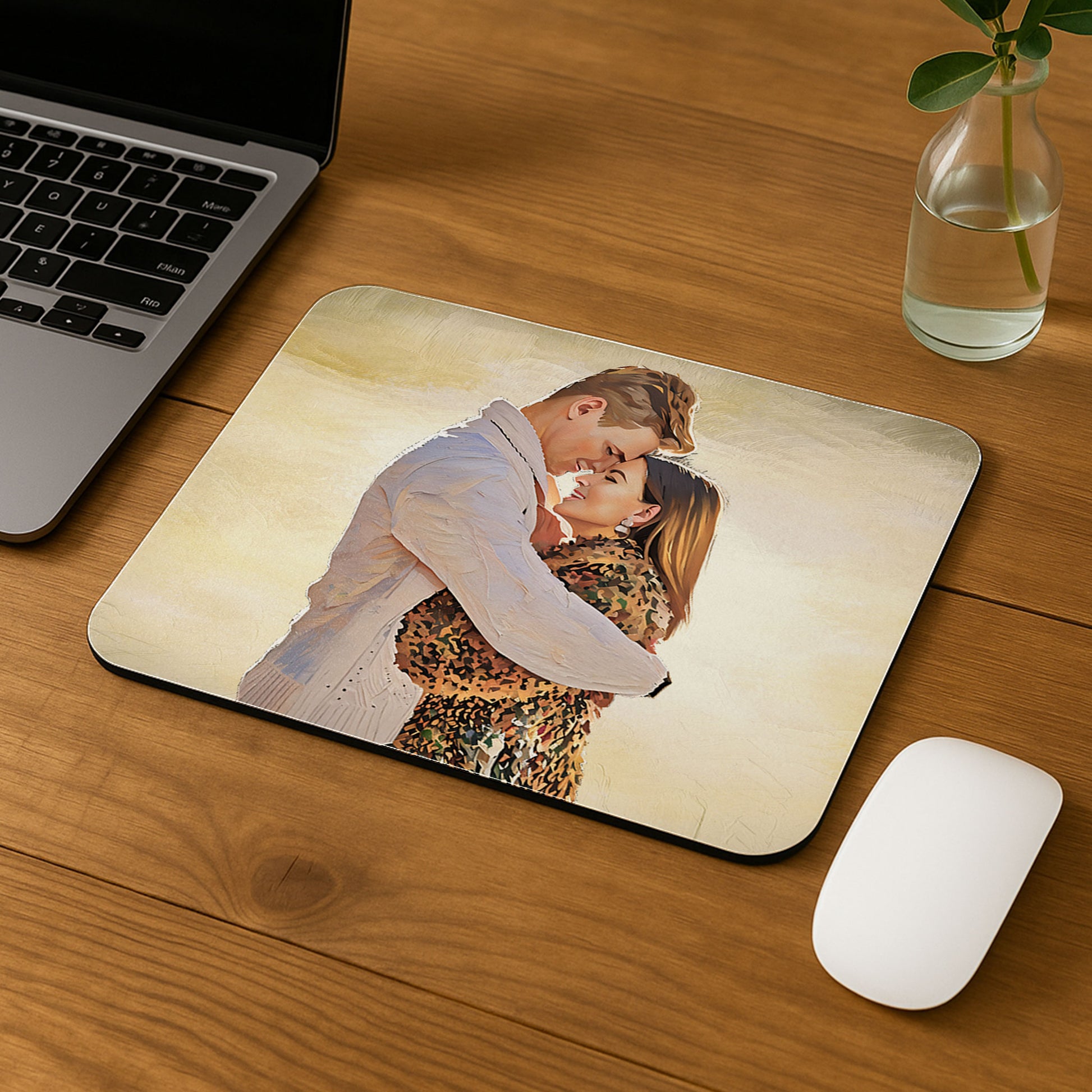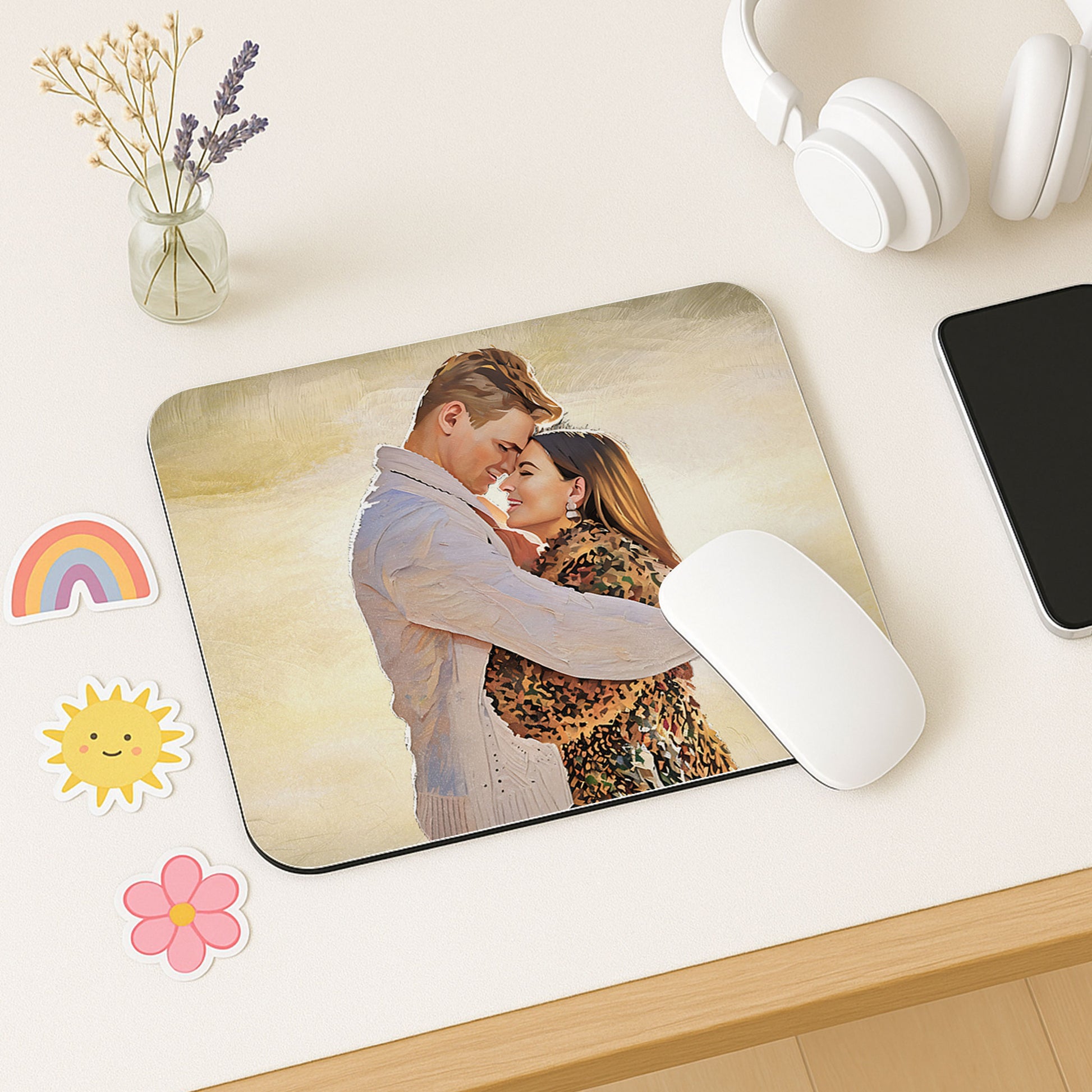 Customized Photo to Art First Date or Wedding Picture Rectangle Mouse Pad Oil Painting Style Gift For Couple