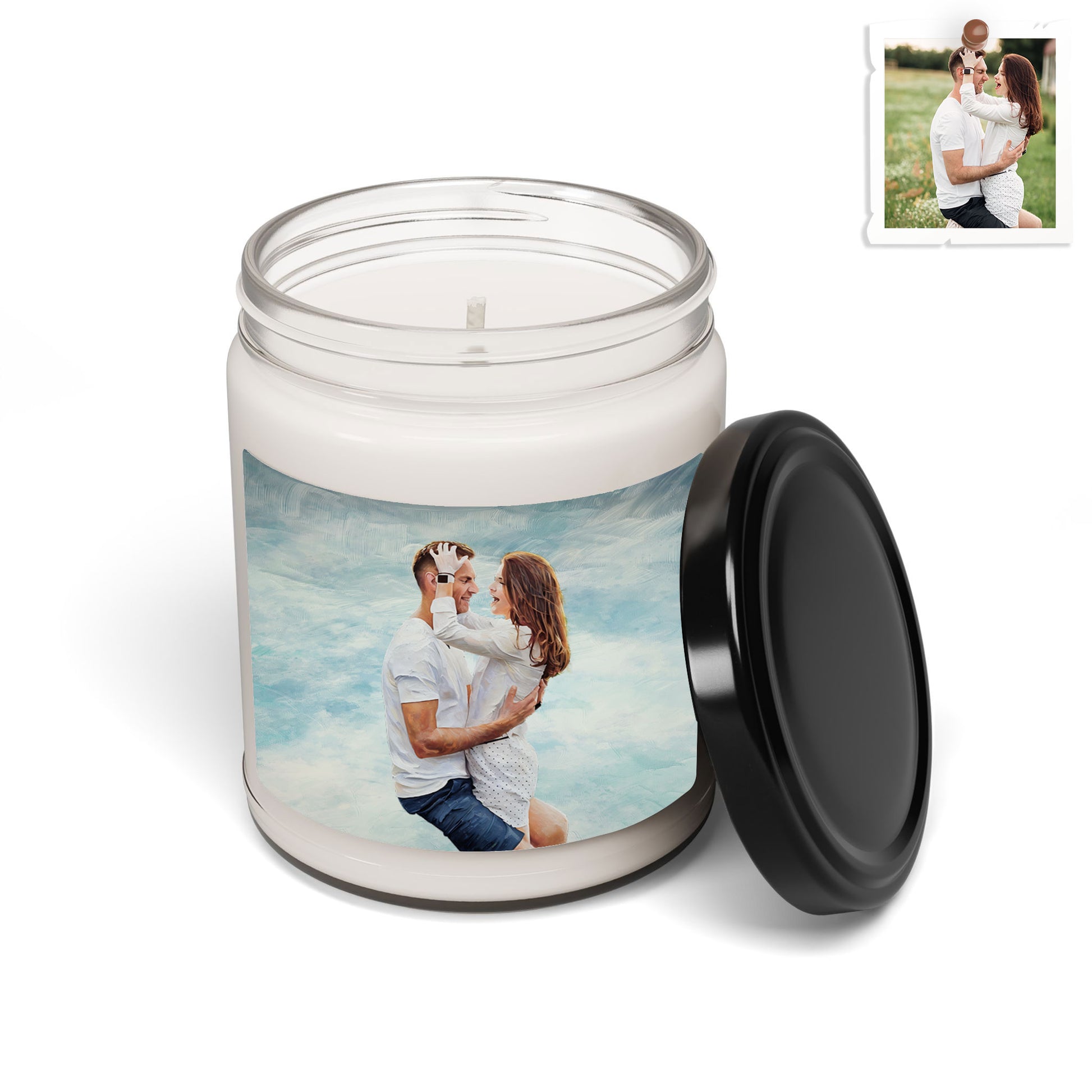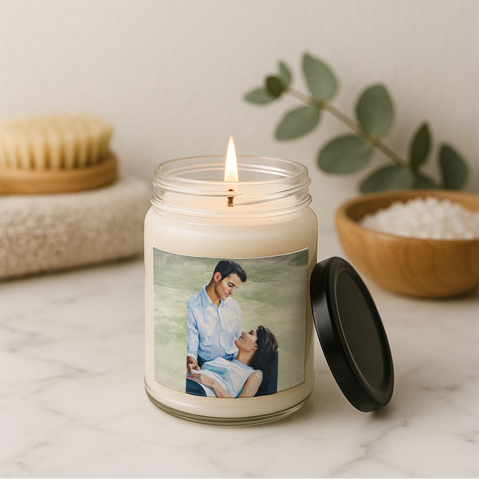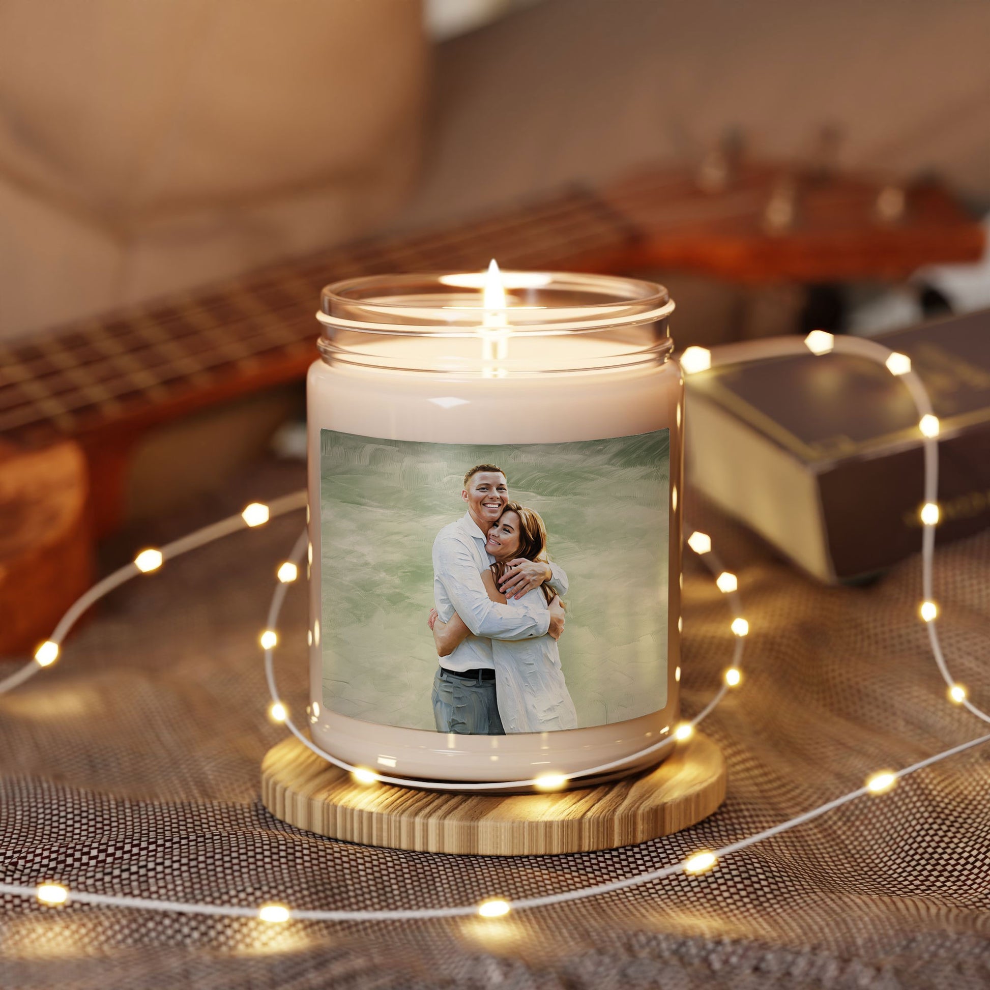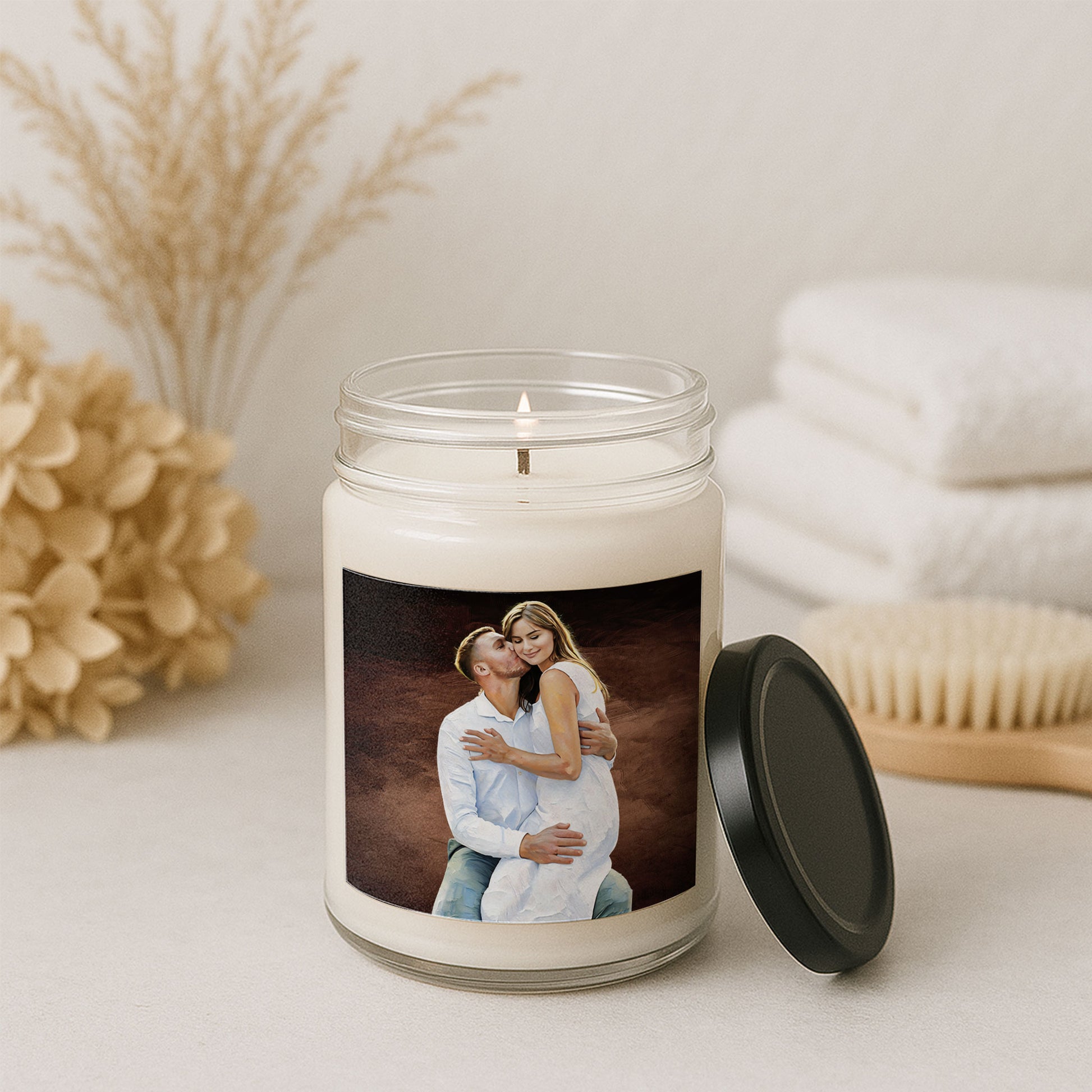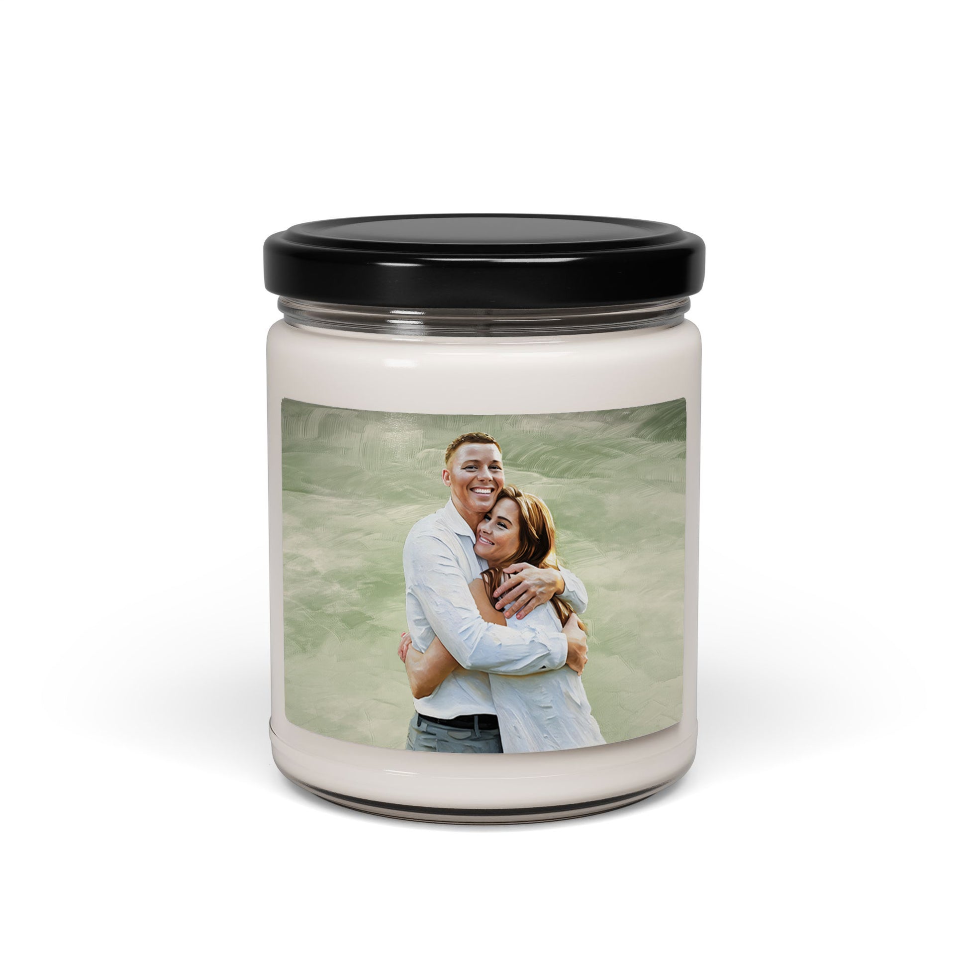 Customized Photo to Art First Date or Wedding Picture 9oz. Scented Soy Candle Oil Painting Style Gift For Couple