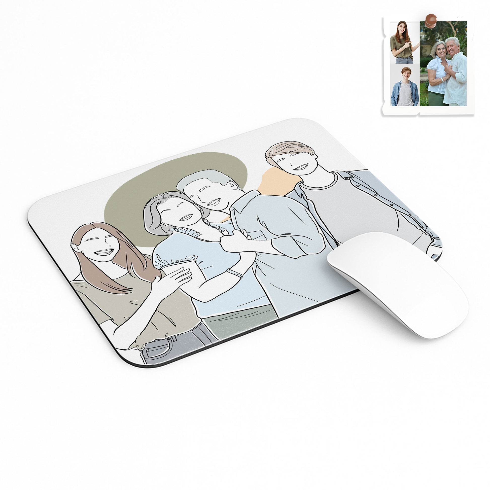 Customized Photo to Doodle Mom and Baby, Dad and Kids Rectangle Mouse Pad Minimalist Style Family Gift