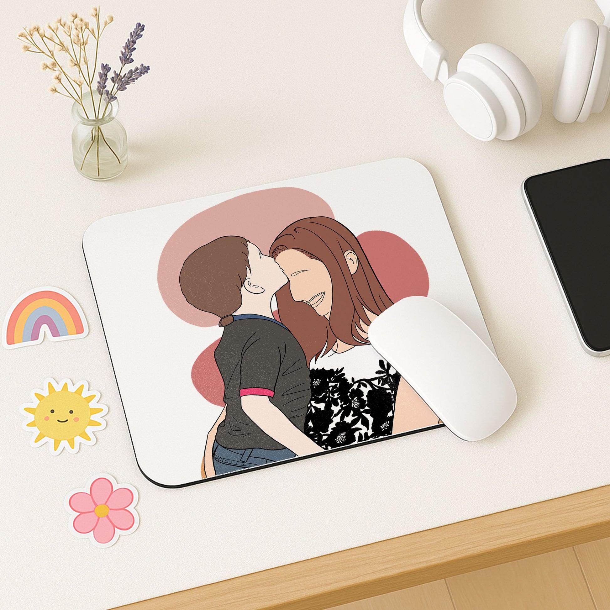 "Every morning, as sunlight spills across my desk, I catch a glimpse of our little family frozen in that cheerful doodle. It’s not just a mouse pad—it’s a tiny anchor to all the laughter, the quiet moments, the messy breakfasts that somehow feel perfect. Somehow, seeing us there reminds me to slow down, smile, and carry a bit of that warmth into whatever the day throws at me. It’s silly maybe, but it feels like having a piece of home right under my hand."