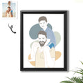 Customized Photo to Doodle Mom and Baby, Dad and Kids Canvas Print Hand-Drawn Style Gift for Family