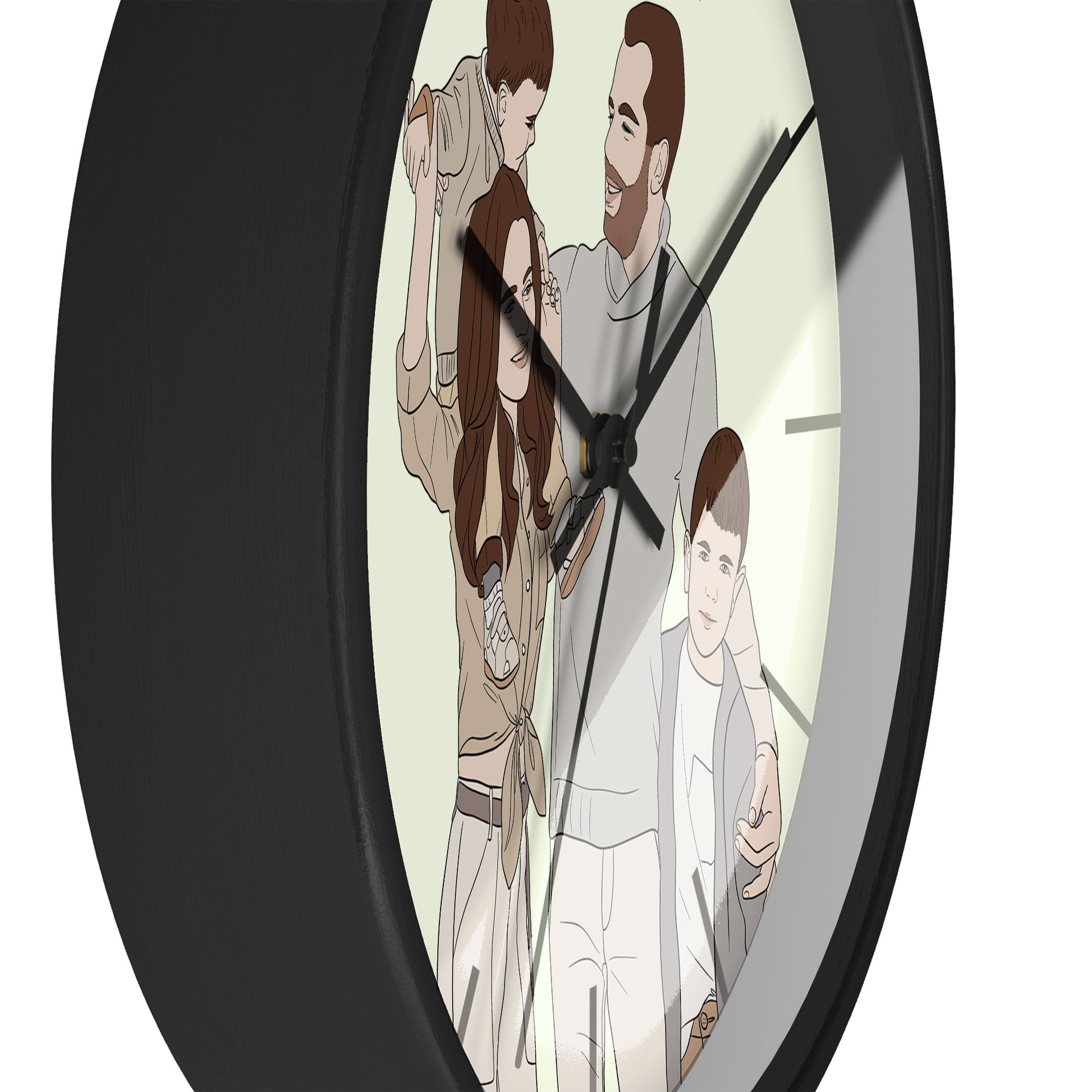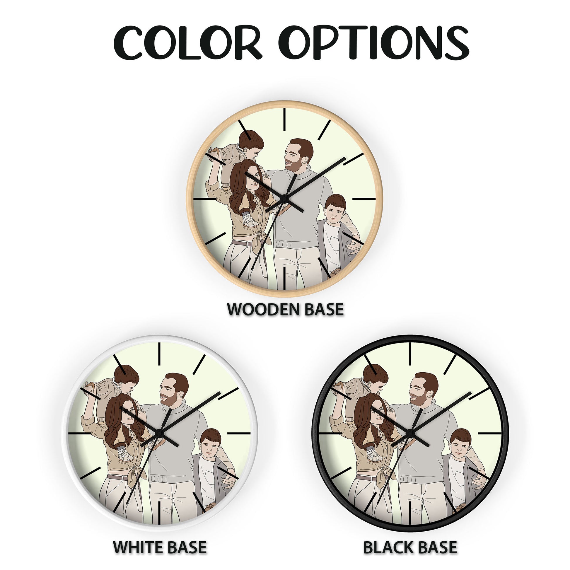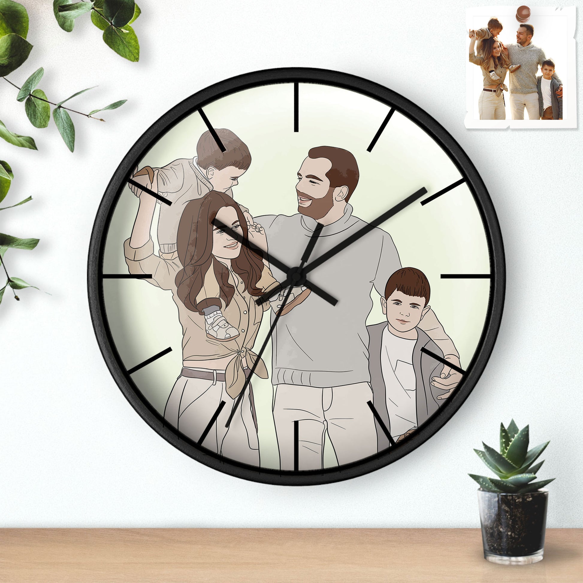 Customized Mom and Baby, Dad and Kids Customized Photo to Portrait Wall Clock Doodle Style Gift for Family