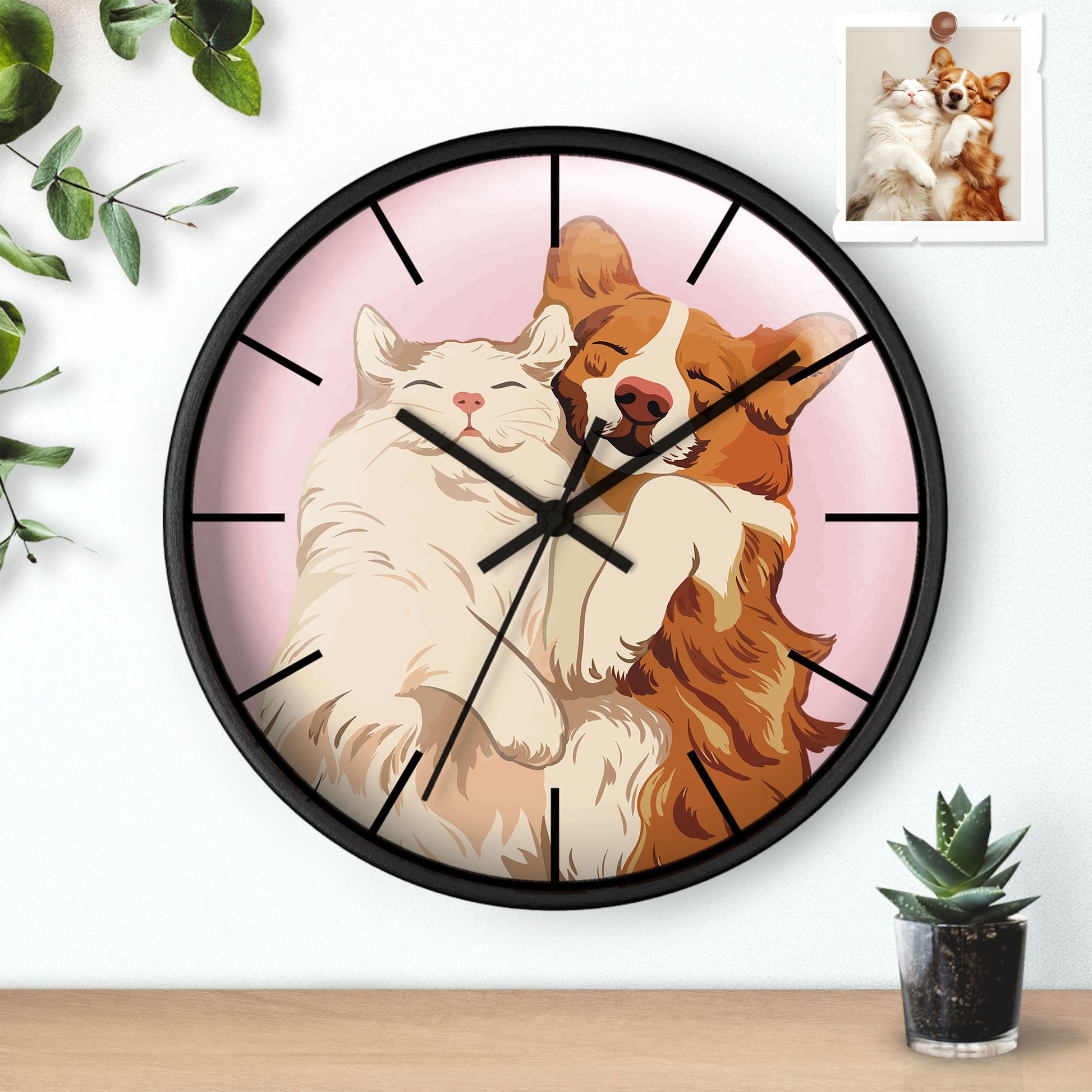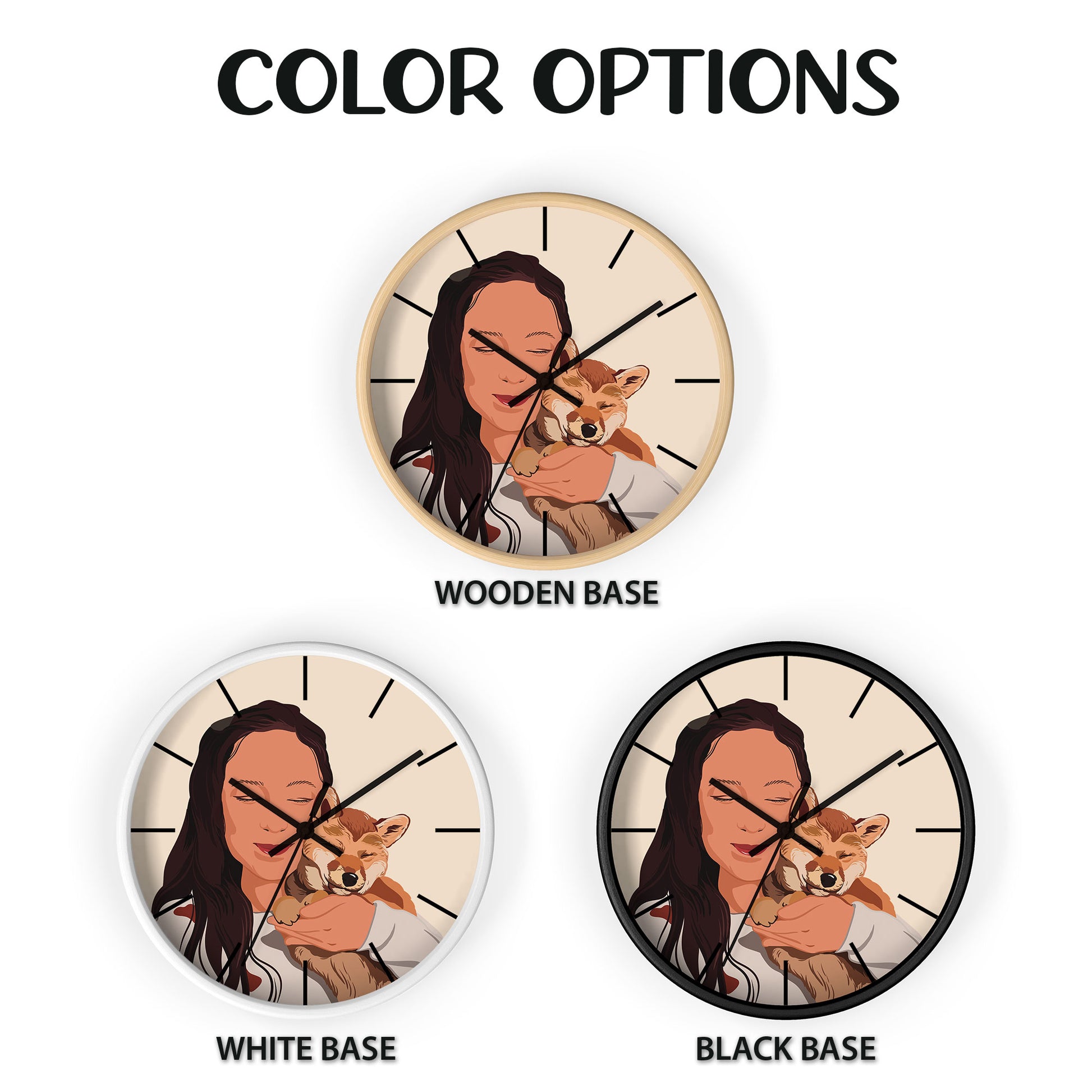 Customized Photo to Illustration Pet Artwork Wall Clock Digital Art Style Pet Birthday Gift