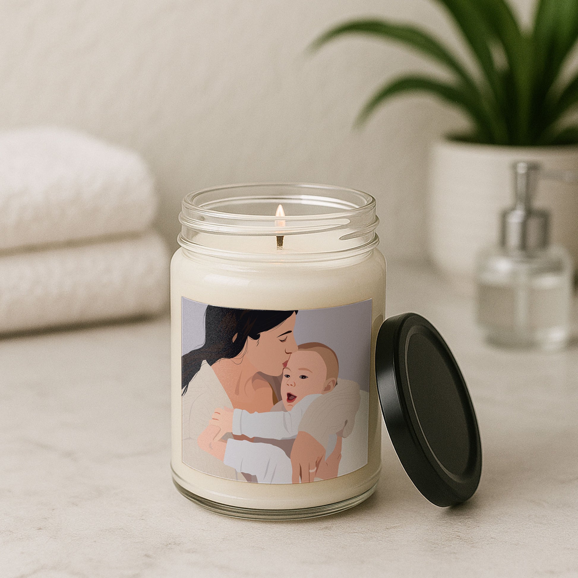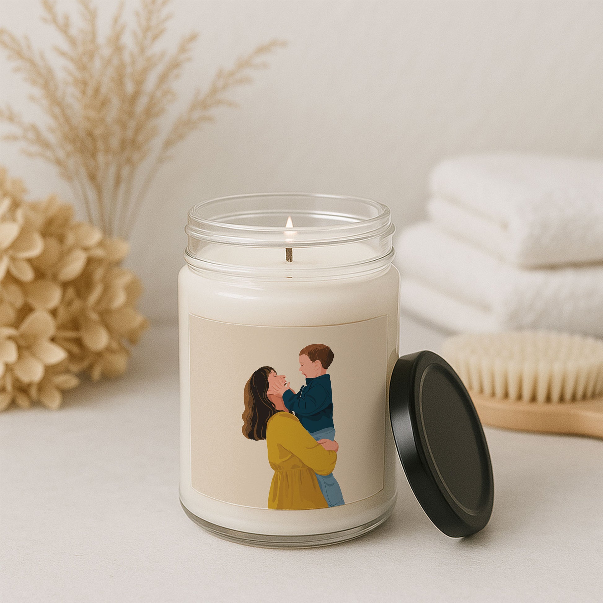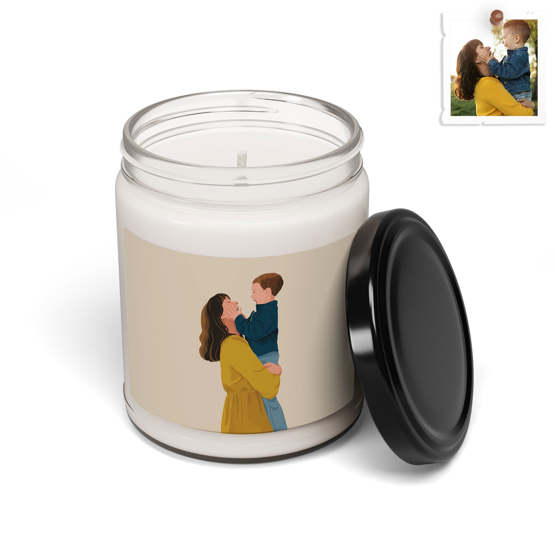 Customized Photo to Illustration Family Portrait 9oz. Scented Soy Candle Digital Art Style Mother's Day Gift