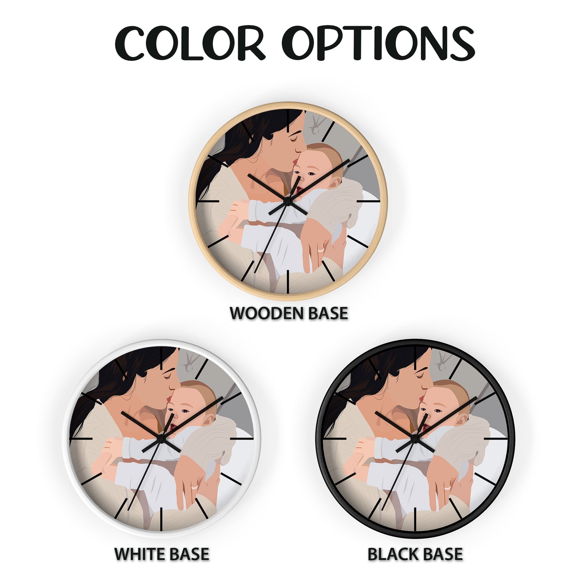 Customized Photo to Illustration Family Portrait Wall Clock Digital Art Style Mother's Day Gift