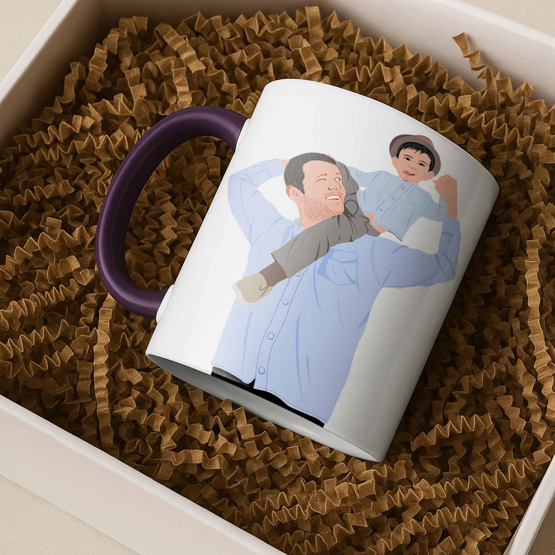 "I wanted to craft a Father's Day gift that captured my father's vibrant spirit. I settled on a photo of him teaching me, his strong hands guiding, and had it transformed into a dynamic, colorful illustration. Now, every morning begins with him gripping that memory, the steam from his coffee animating the bold artwork on his mug. He feels the warmth travel through his fingers, a powerful echo of that patient, guiding presence. It’s a lively tribute to his strength, a daily jolt of gratitude for the man who taught me how to navigate the world."