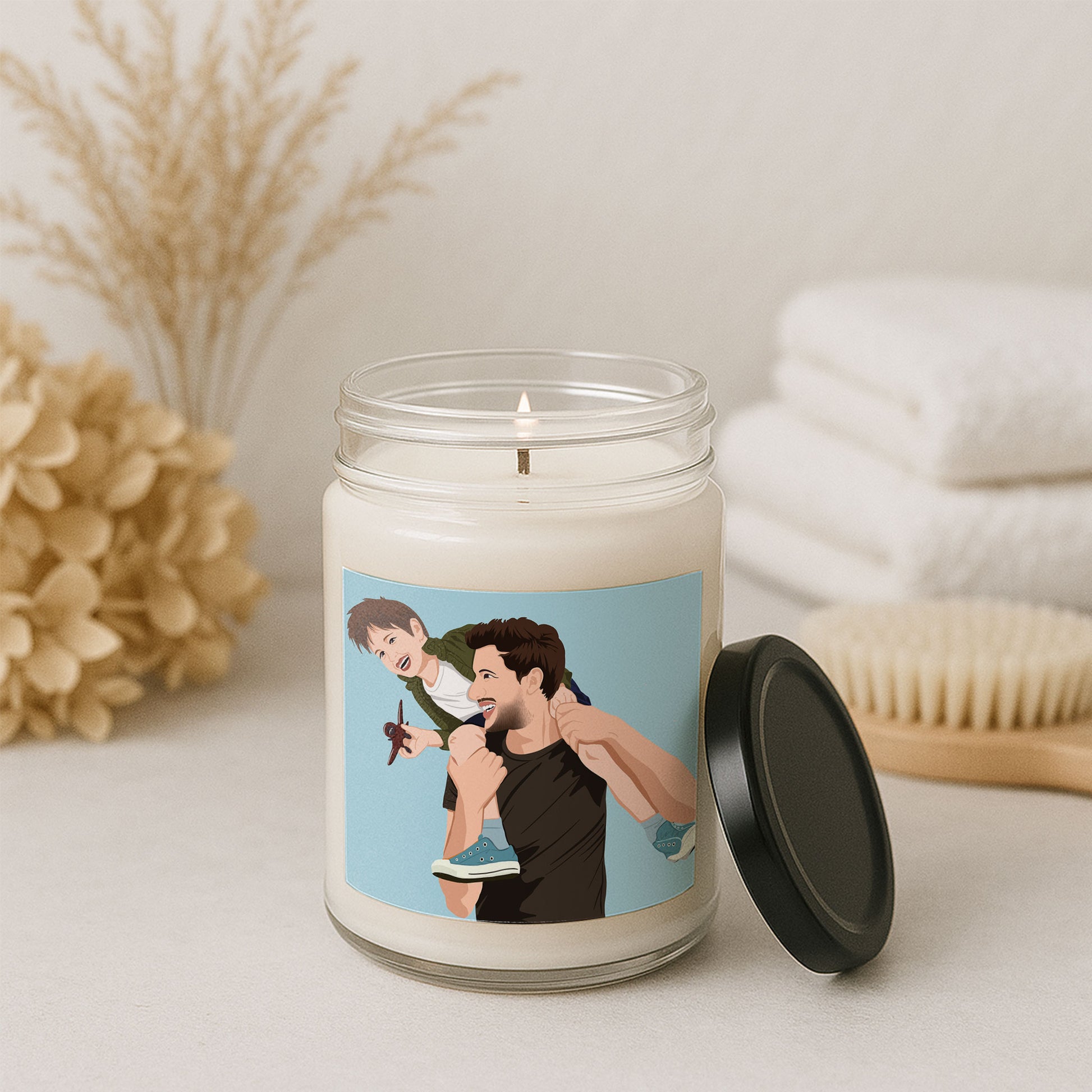 "I wanted this Father's Day gift to hold more than just memory—I wanted it to hold his presence. I chose a photo of him teaching me, his hands guiding mine, and had it transformed into a thoughtful piece of digital art. When I lit the candle for the first time, the scent filled the room, and the soft glow brought that illustrated moment to life. It wasn’t just a gift; it was a quiet evening with him all over again, his patience and warmth forever captured in art and light."