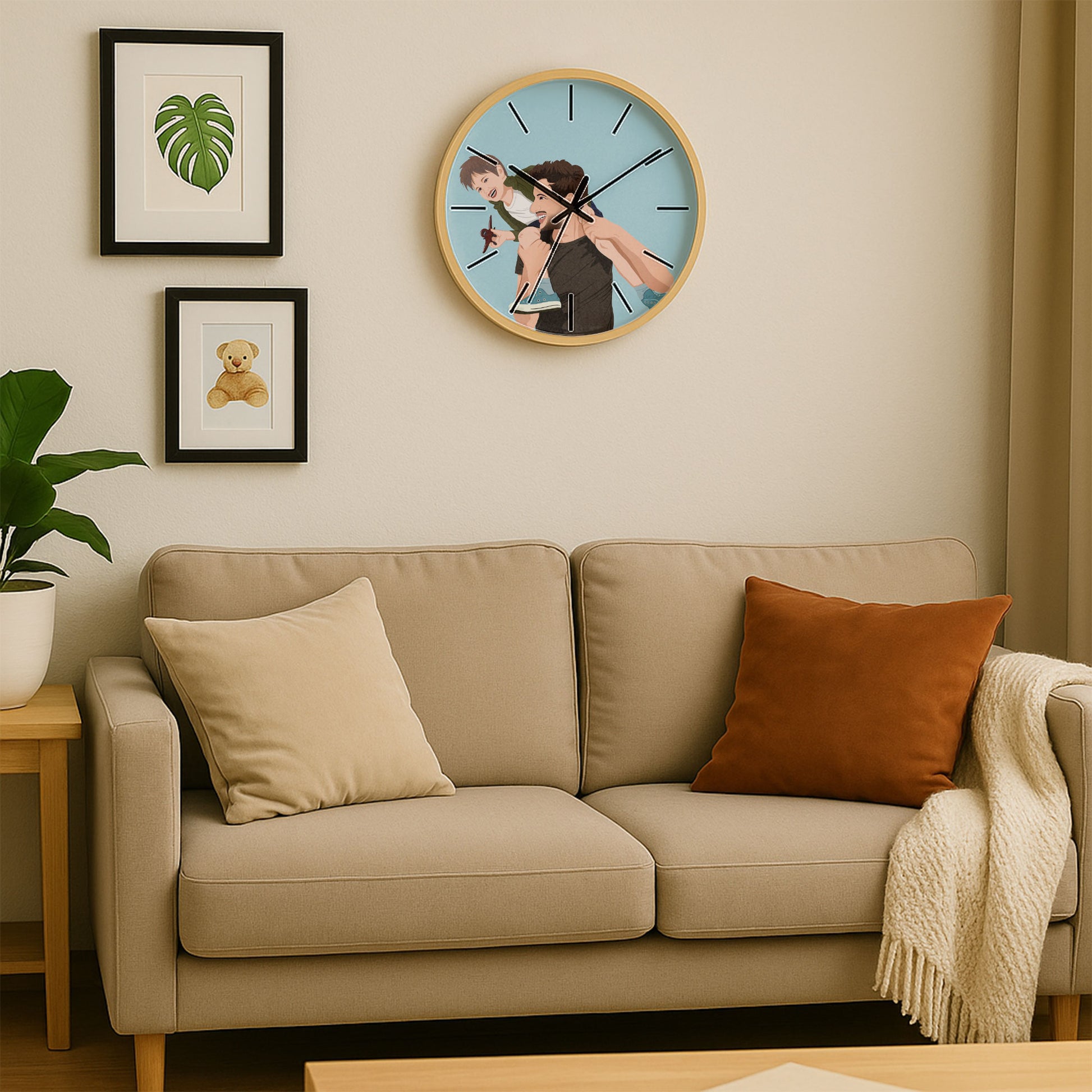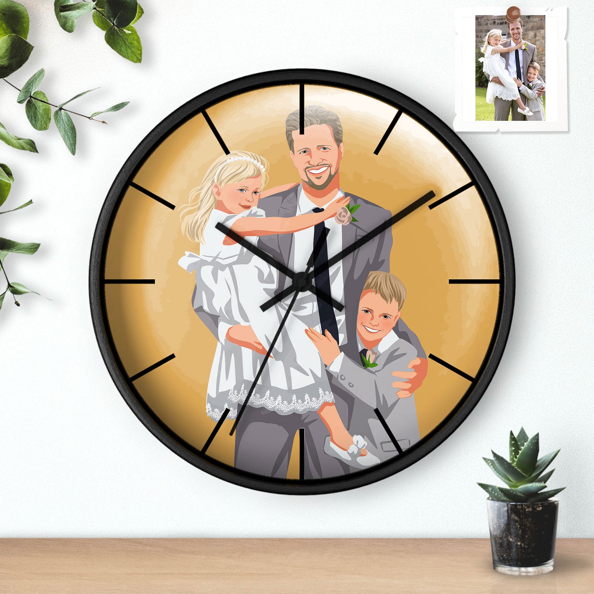 Customized Photo to Art Family Portrait Wall Clock Digital Art Style Father's Day Gift