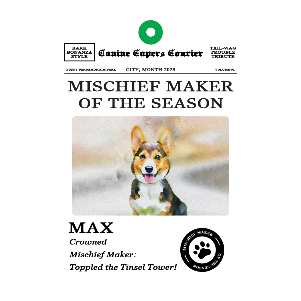 Personalized Keepsake: Upload your pet's photo and choose a funny, custom headline (like "Gnawed the Holiday Wreath!") to immortalize their personality.