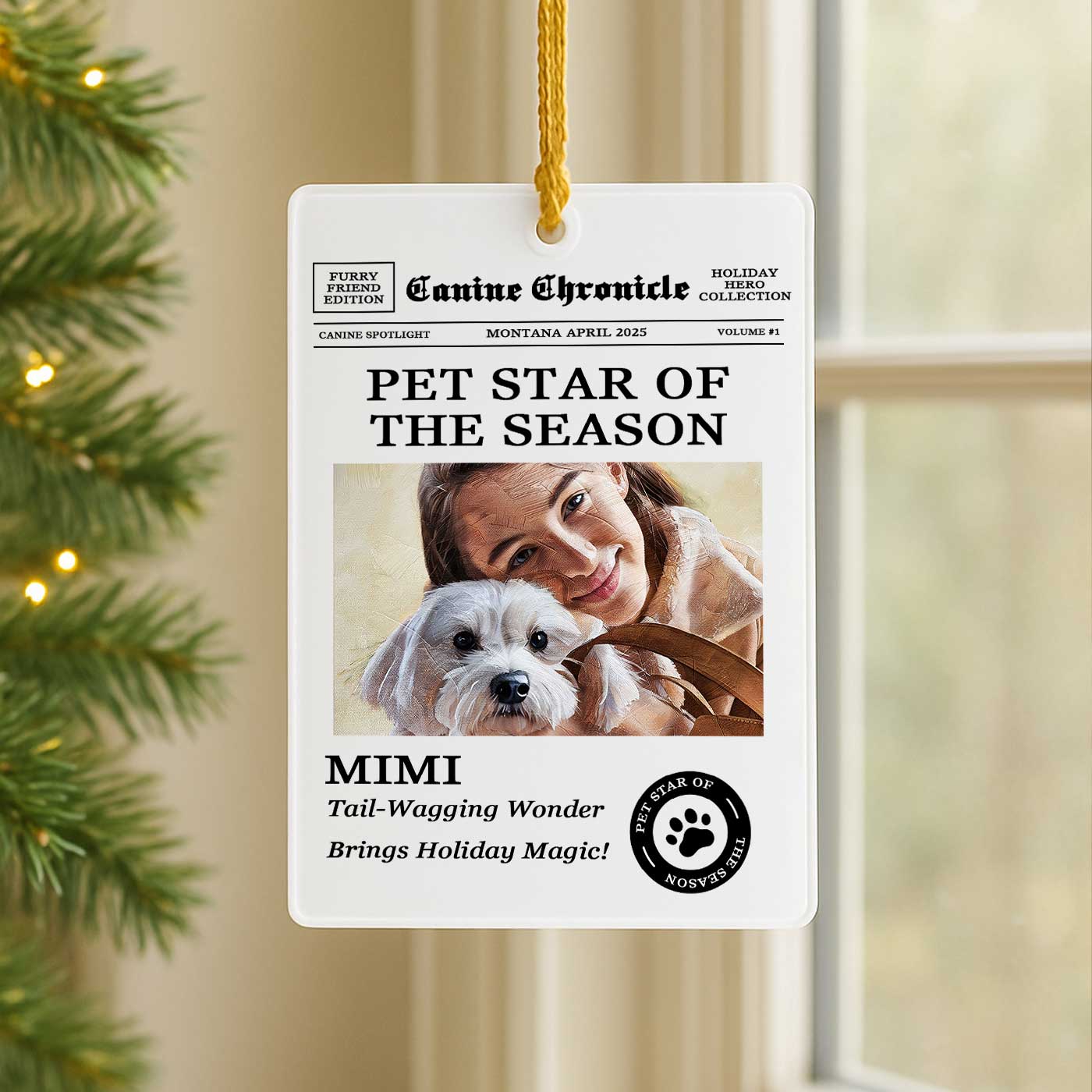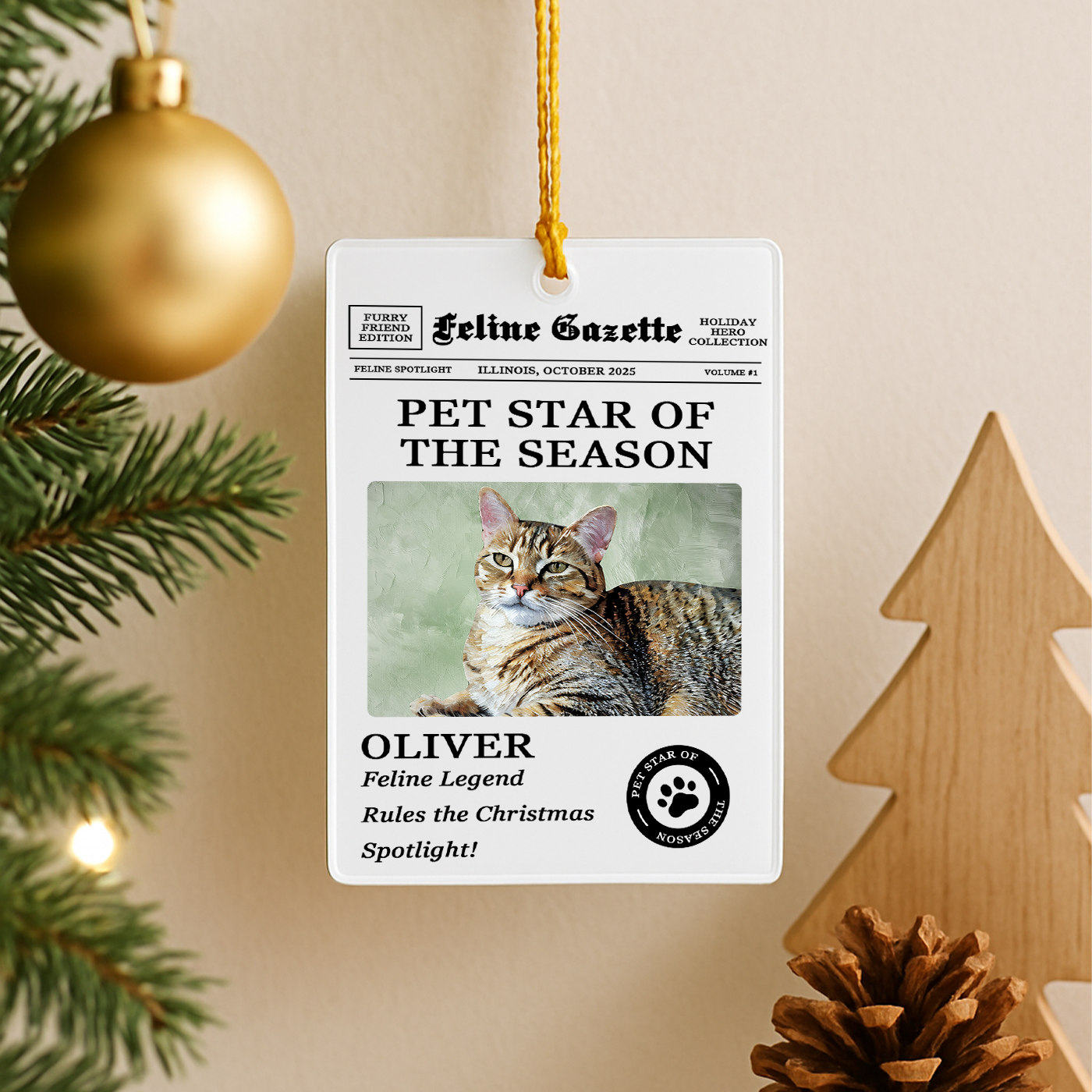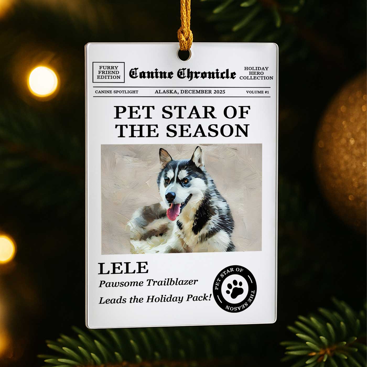 Picture this: It’s a chilly December evening, and you’re decorating your Christmas tree with twinkling lights and cherished ornaments. Among them, one stands out - a sparkling Paws & Tails - Pet Star of the Season - Custom Acrylic Photo Ornament from our Holiday Hero Collection. As you hang this Furry Friend Edition keepsake, your beloved dog or cat’s face beams back at you, immortalized in a festive, newspaper-inspired design. You can’t help but smile, remembering all the tail-wags and purrs that make your pet the true star of your home.